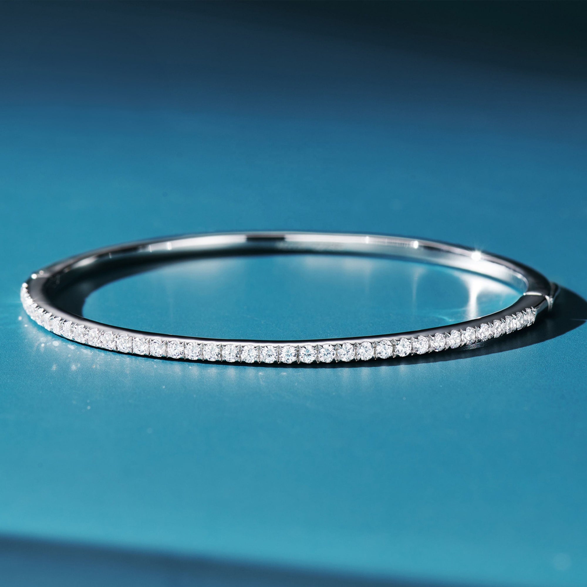 Brățară Nobilă Rigidă din Argint 925 și Cristale de Zirconiu, Placată cu Rodiu