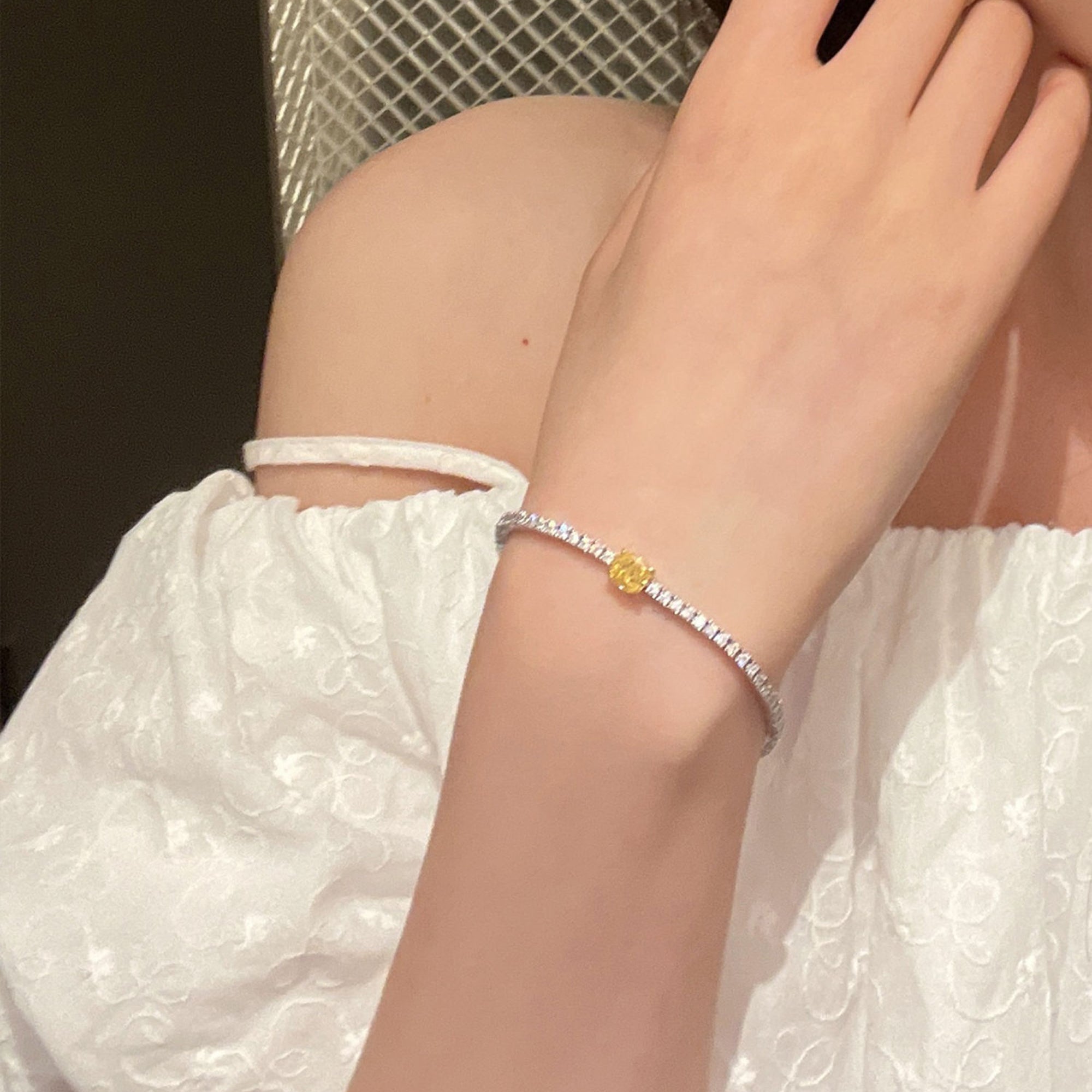 Brățară Tennis Regală cu Piatră Galbenă și Zirconiu, Argint 925