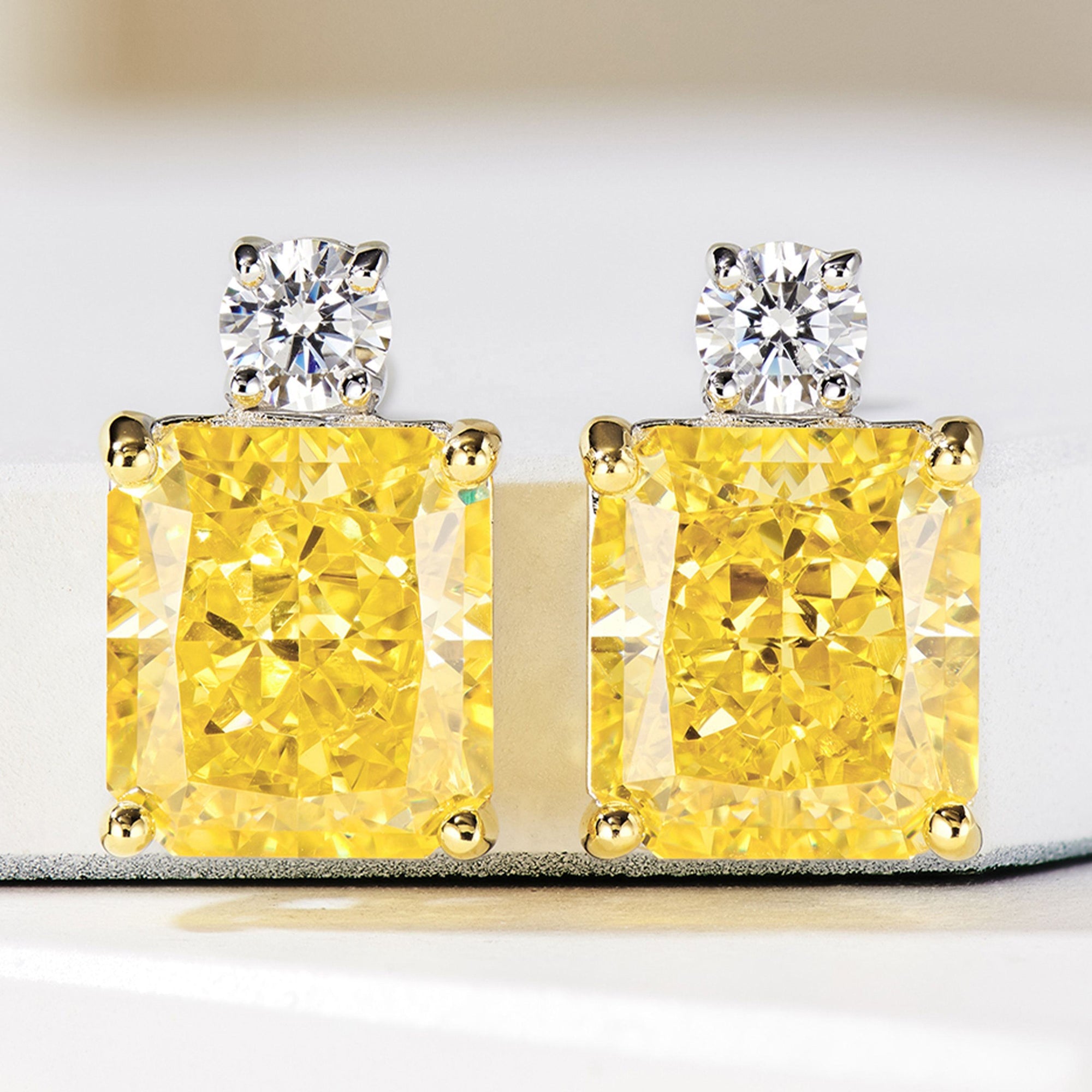 Cercei Cristal Galben cu Tăietură Radiantă din Argint S925 Placat cu Rodiu și Zirconiu 5A
