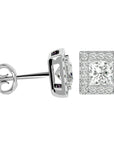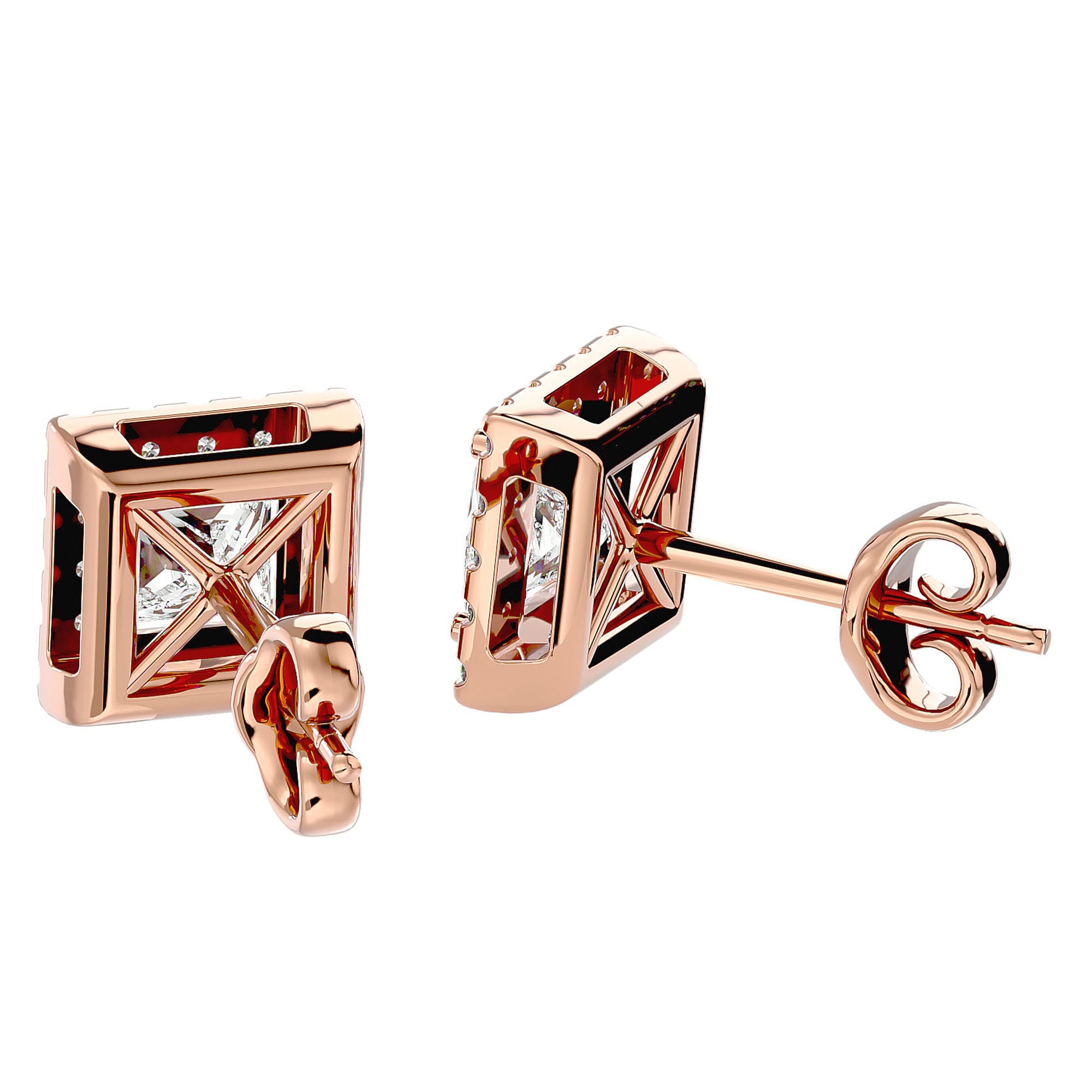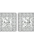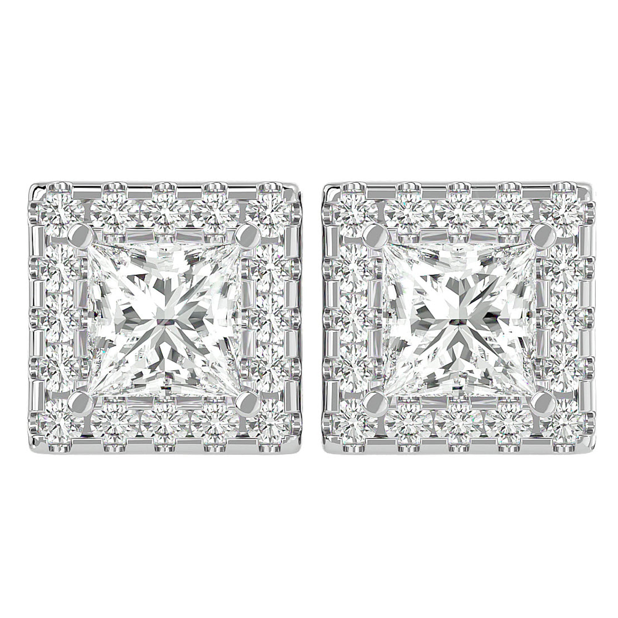 Cercei din Aur 14k cu Diamante Create în Laborator In Formă de Prințesă cu Ramă Halo de 2.15 ct