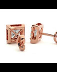 Cercei din Aur 14k cu Moissanite In Formă de Prințesă cu Ramă Halo de 2.15 ct din 14k Aur Roz - Castelo.ro