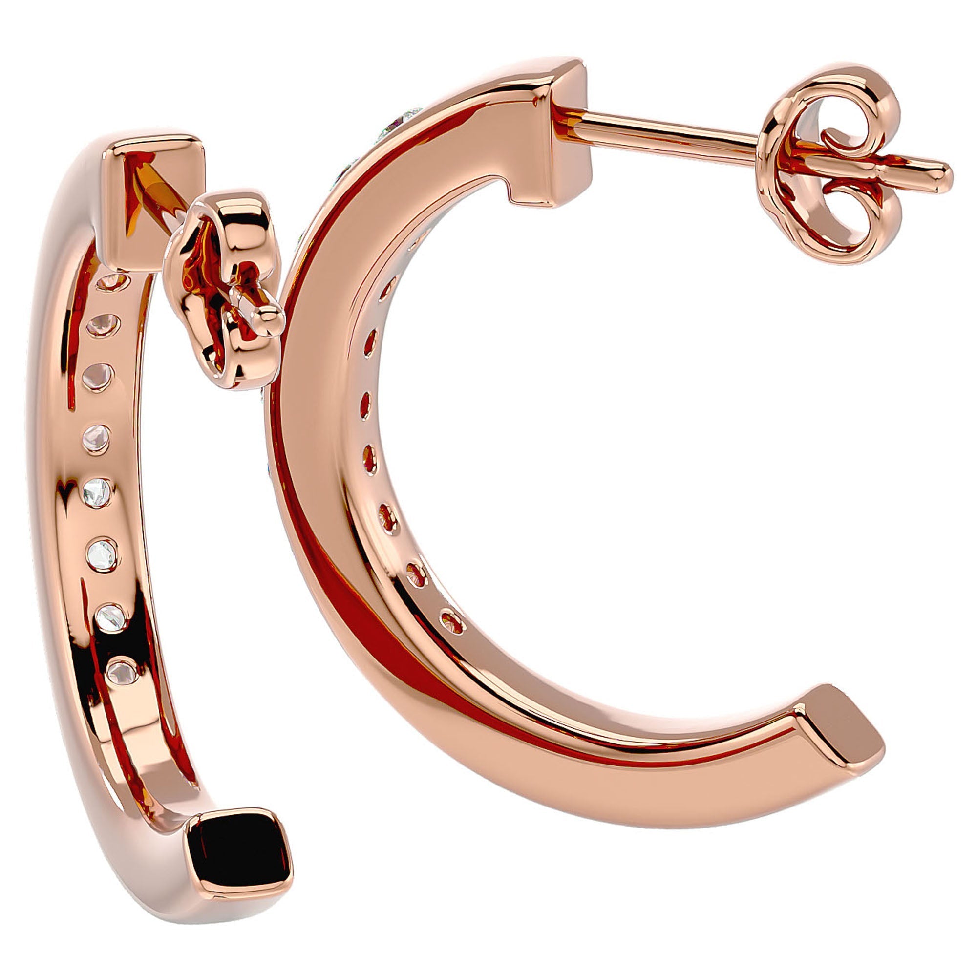 Cerceii sunt încrustați cu diamante create în laborator, sumând în total 0.46 ct, fiecare piatră fiind selecționată pentru puritatea și strălucirea sa excepțională. Designul nobil al acestor cercei Hoop este accentuat de strălucirea diamantelor, care captează și reflectă lumina în mod spectaculos, creând un efect vizual captivant.