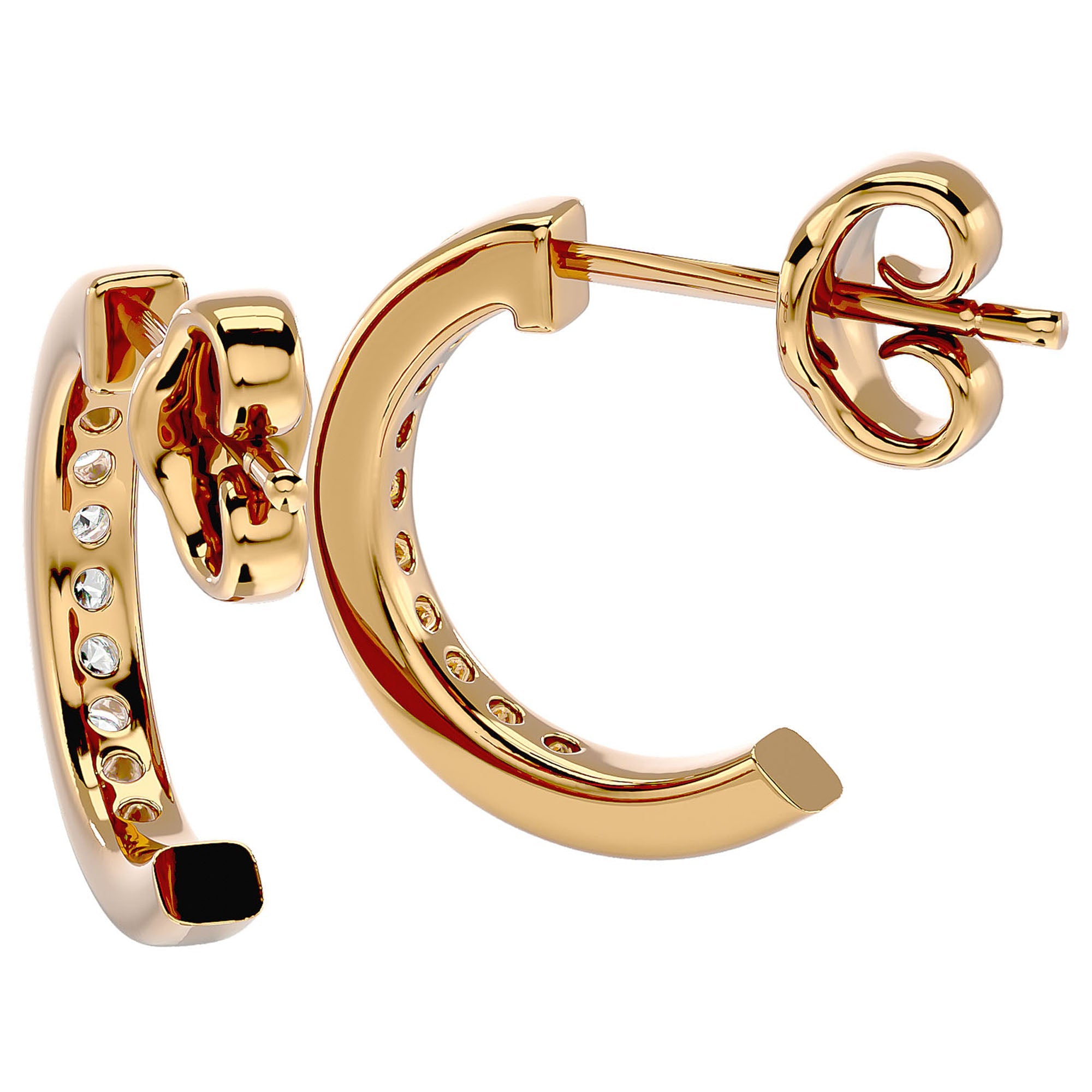 Încrustați cu diamante naturale ce totalizează 0.54 carate, Cerceii Hoop Regali strălucesc cu o luminozitate impresionantă. Fiecare diamant este atent selecționat pentru claritatea și strălucirea sa, reflectând lumina într-un spectacol de scântei seducătoare, care captează esența unui stil de viață rafinat.