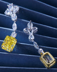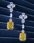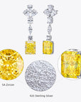 Cercei Lungi cu Piatră Galbenă Tăietură Radiantă din Argint 925 Placat cu Rodiu și Zirconiu 5A