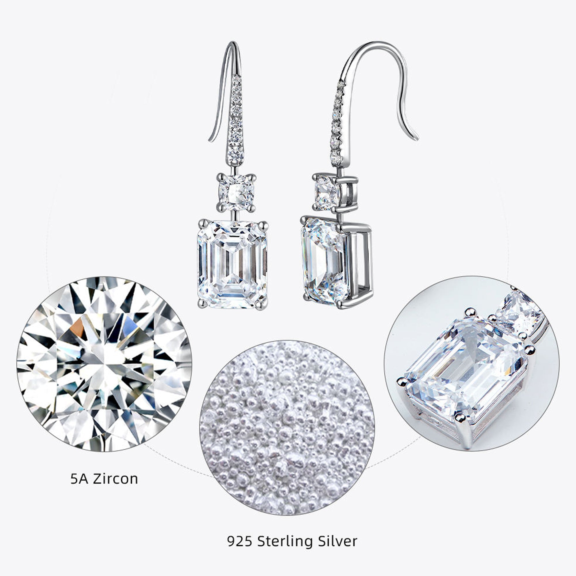 Cercei Picătură Baguette din Argint 925 Placat cu Rodiu și Zircon 5A