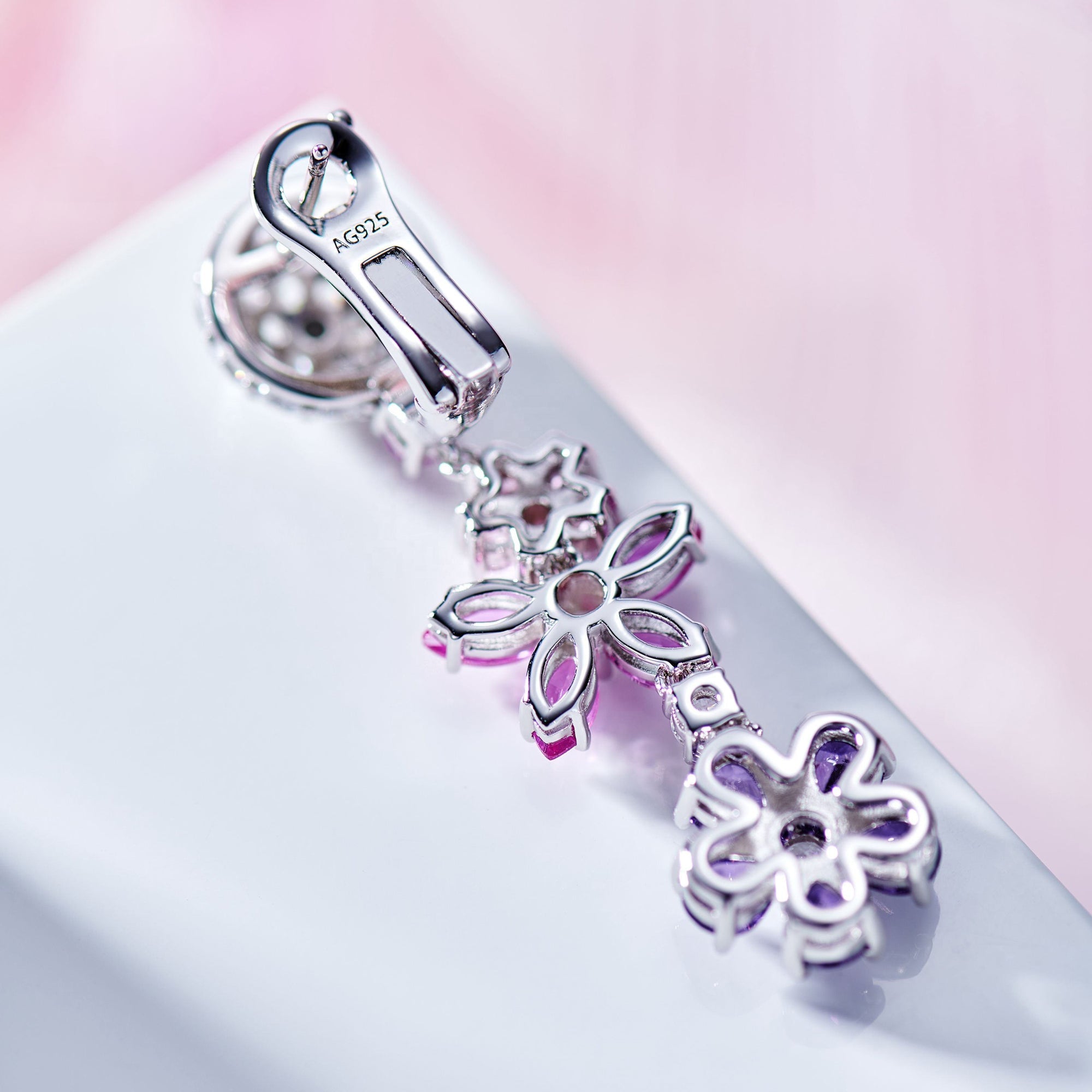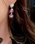 Cercei Picătură cu Flori din Argint 925 Placat cu Rodiu și Zircon 5A