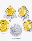 Fiecare cercei este meticulos realizat din Argint S925, o alegere nobilă pentru bijuteriile de înaltă calitate, și plăcuți cu rodium pentru un finisaj superior și o rezistență crescută în timp. Inima acestor cercei este ocupată de un cristal galben vibrant, captând esența soarelui și reflectând o lumină caldă, învăluitoare, încadrată de zircon A5, ce adaugă o notă de strălucire și exclusivitate.