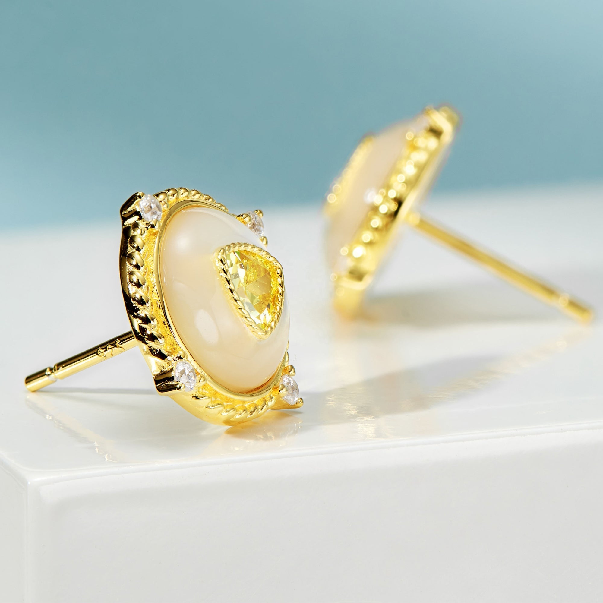 Cercei Stud cu Cristal Galben din Argint 925, Placați cu Aur de 18k