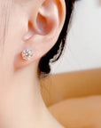 Cercei Stud cu Cristal Rotund Strălucitor în Patru Gheare din Argint 925