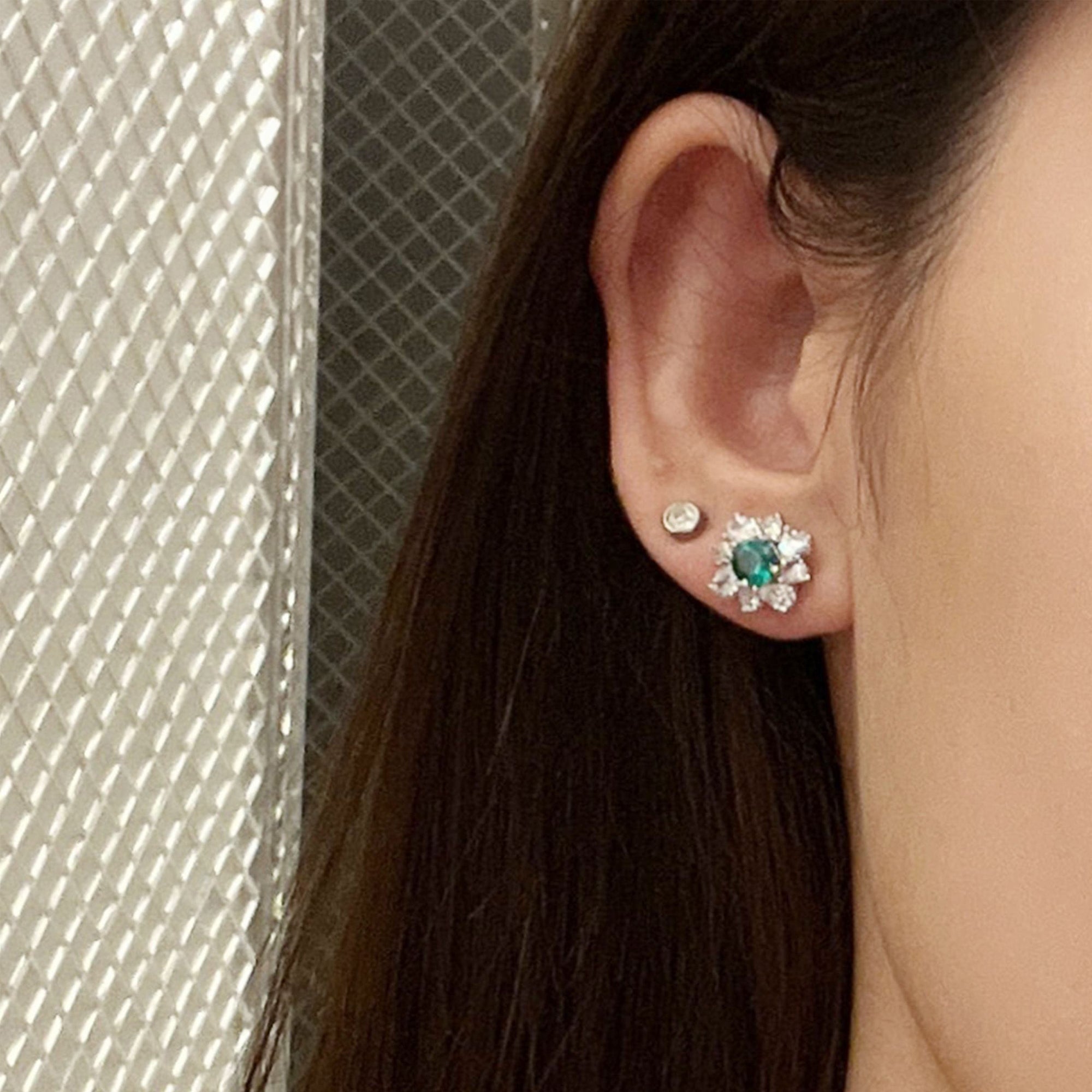 Realizați din Argint S925 de cea mai înaltă calitate și plăcuți cu rodium, acești cercei garantează o durabilitate și o strălucire care să rivalizeze cu stelele. Piatra centrală, un cristal verde de o claritate și o culoare profundă, este încadrată de Zirconiu 5A, ales pentru strălucirea sa remarcabilă, creând un efect vizual spectaculos care capturează esența rafinamentului pur.