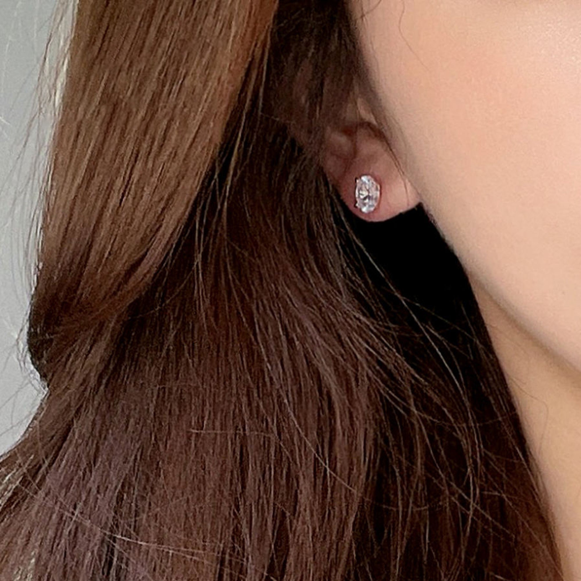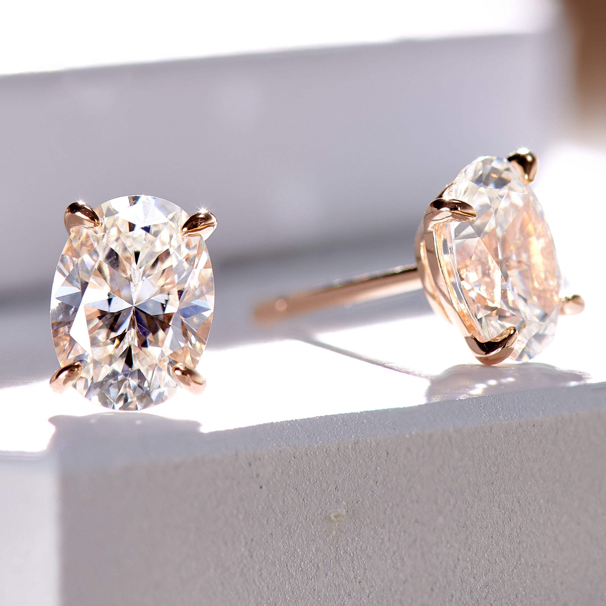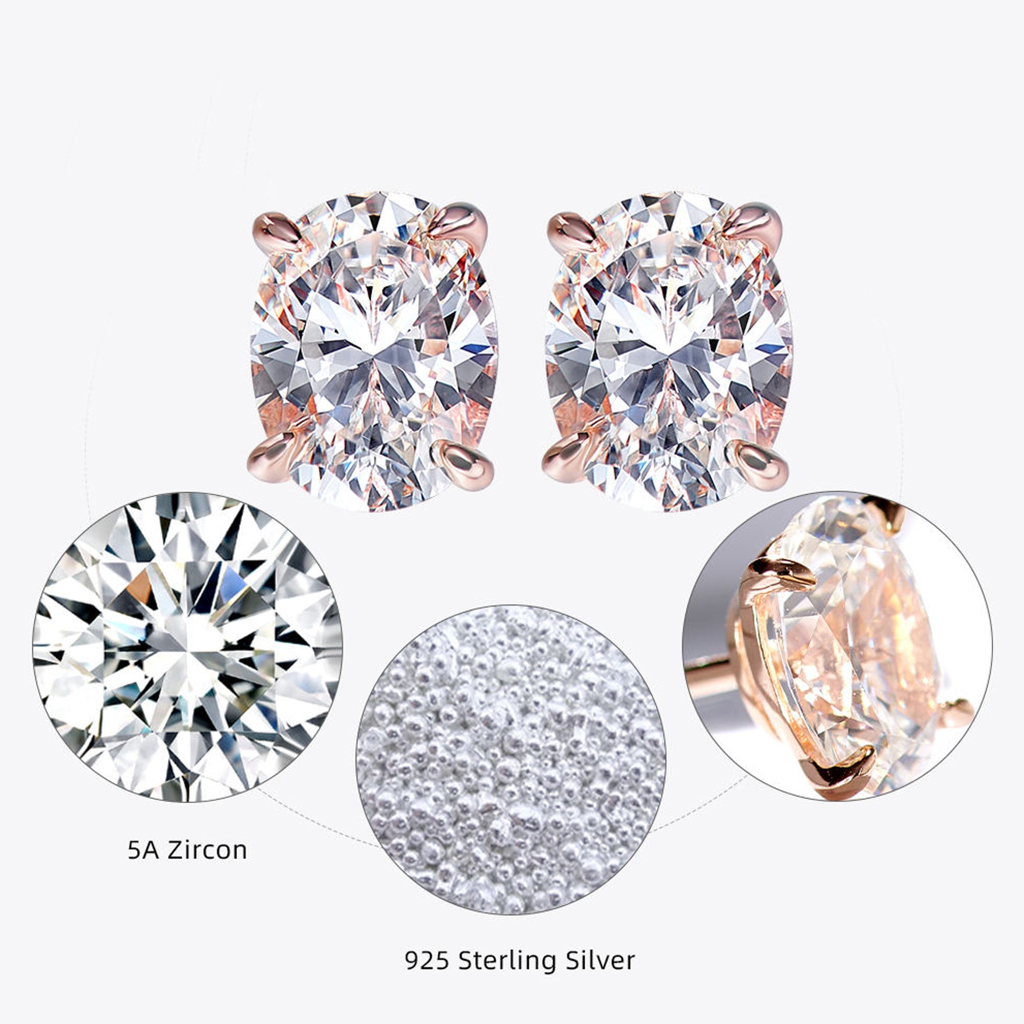 Cercei Stud cu Tăietură Ovală din Argint 925 Placat cu Aur Roz și Zircon 5A