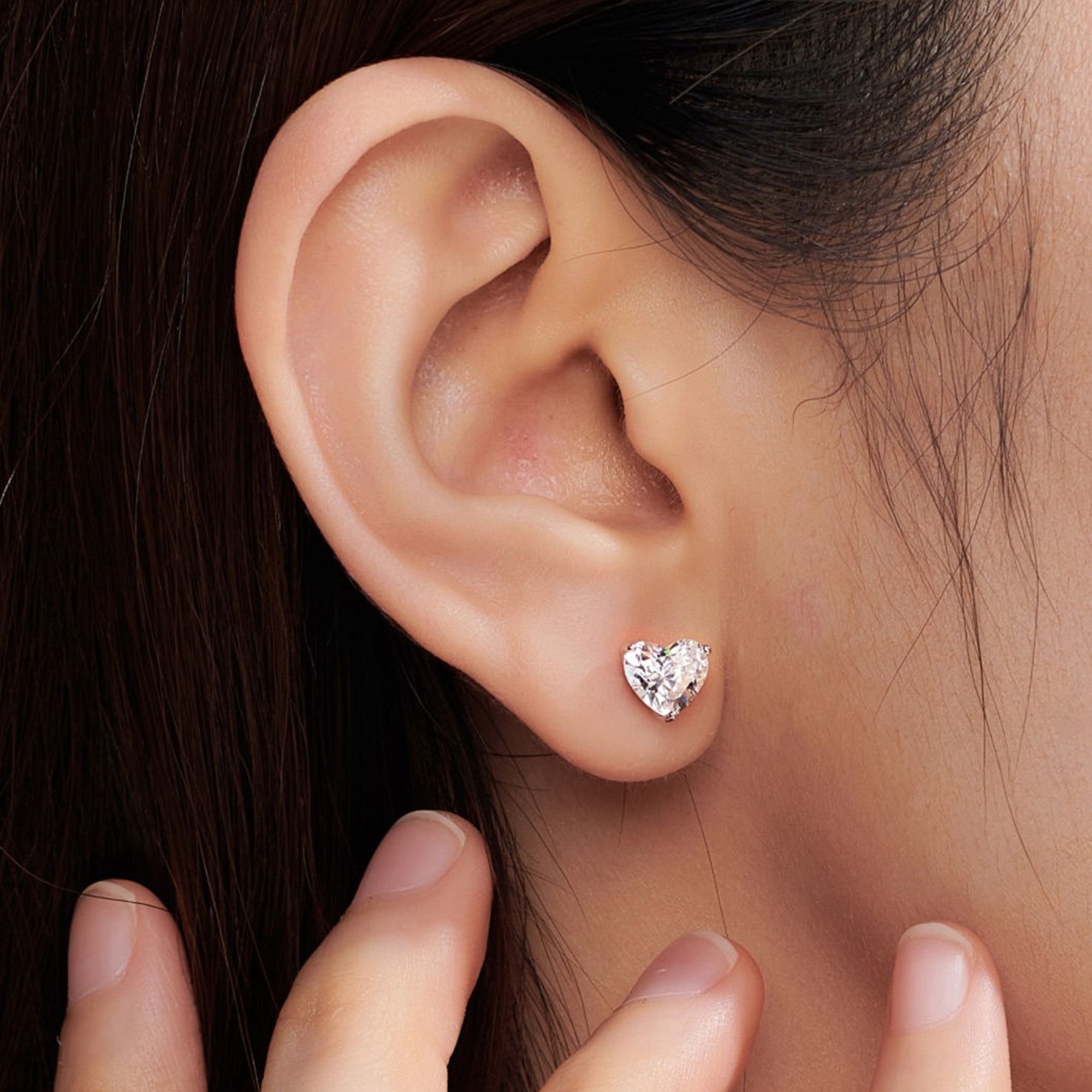 Cercei Stud Inimă din Argint 925 Placat cu Rodiu și Zirconiu 5A