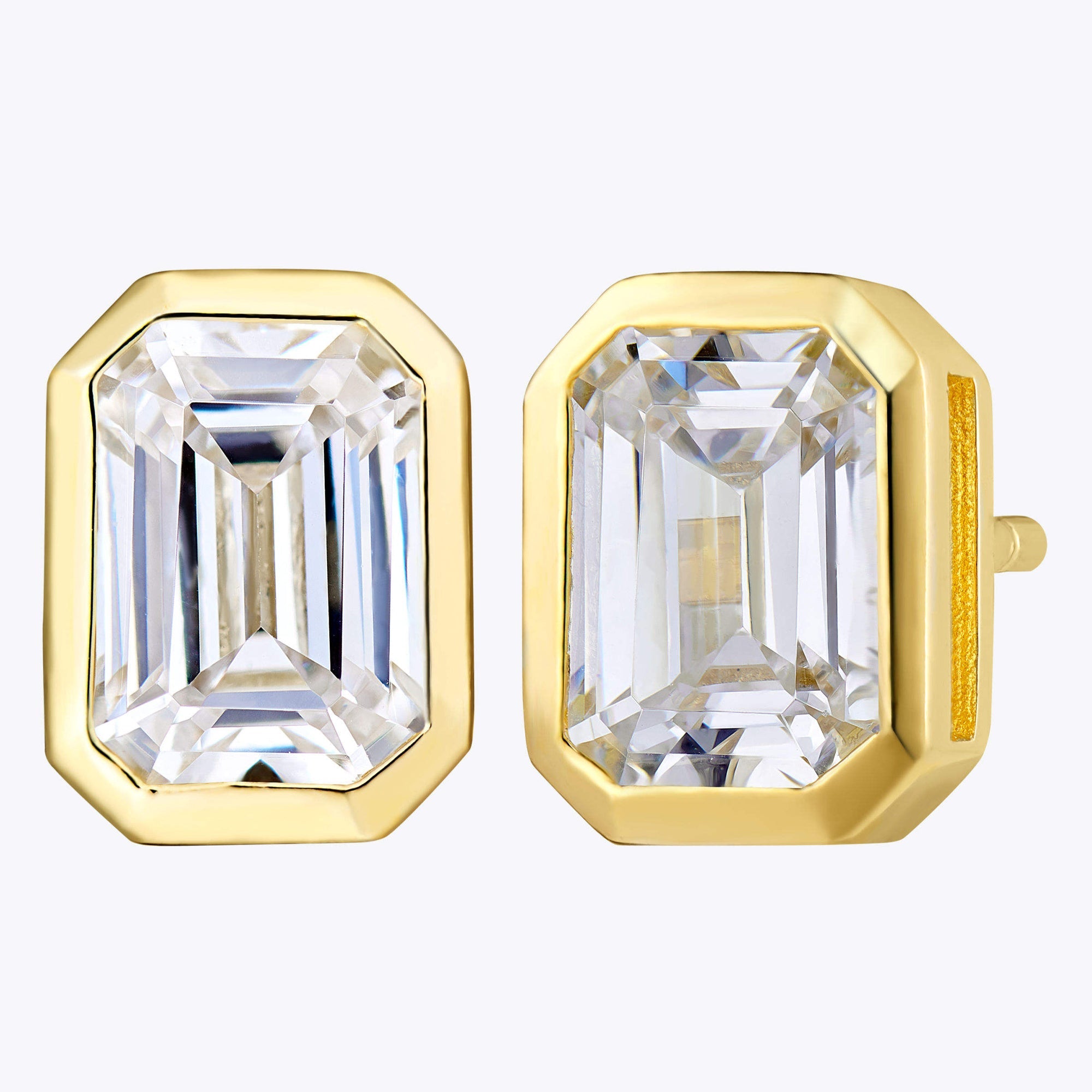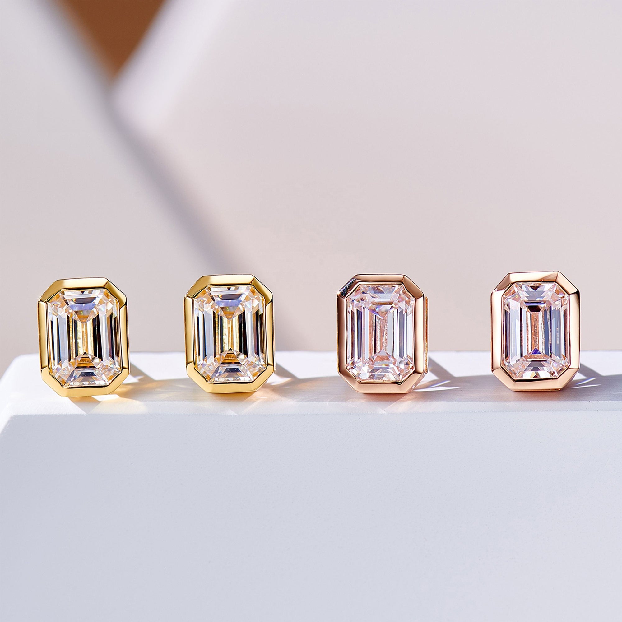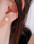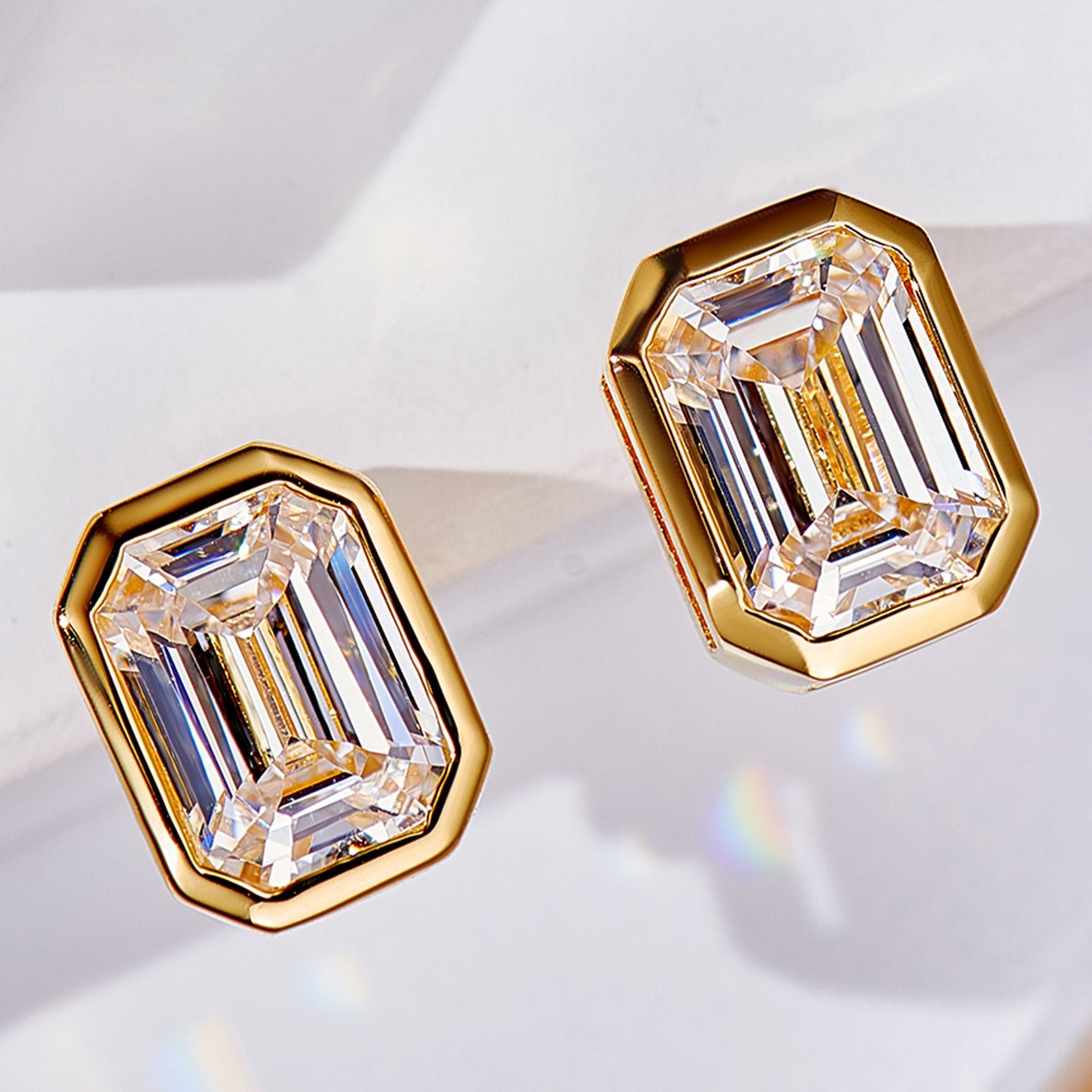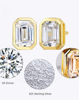 Cercei Stud Rectangulari cu Tăietură Asscher din Argint 925 Placat cu Aur și Zirconiu 5A