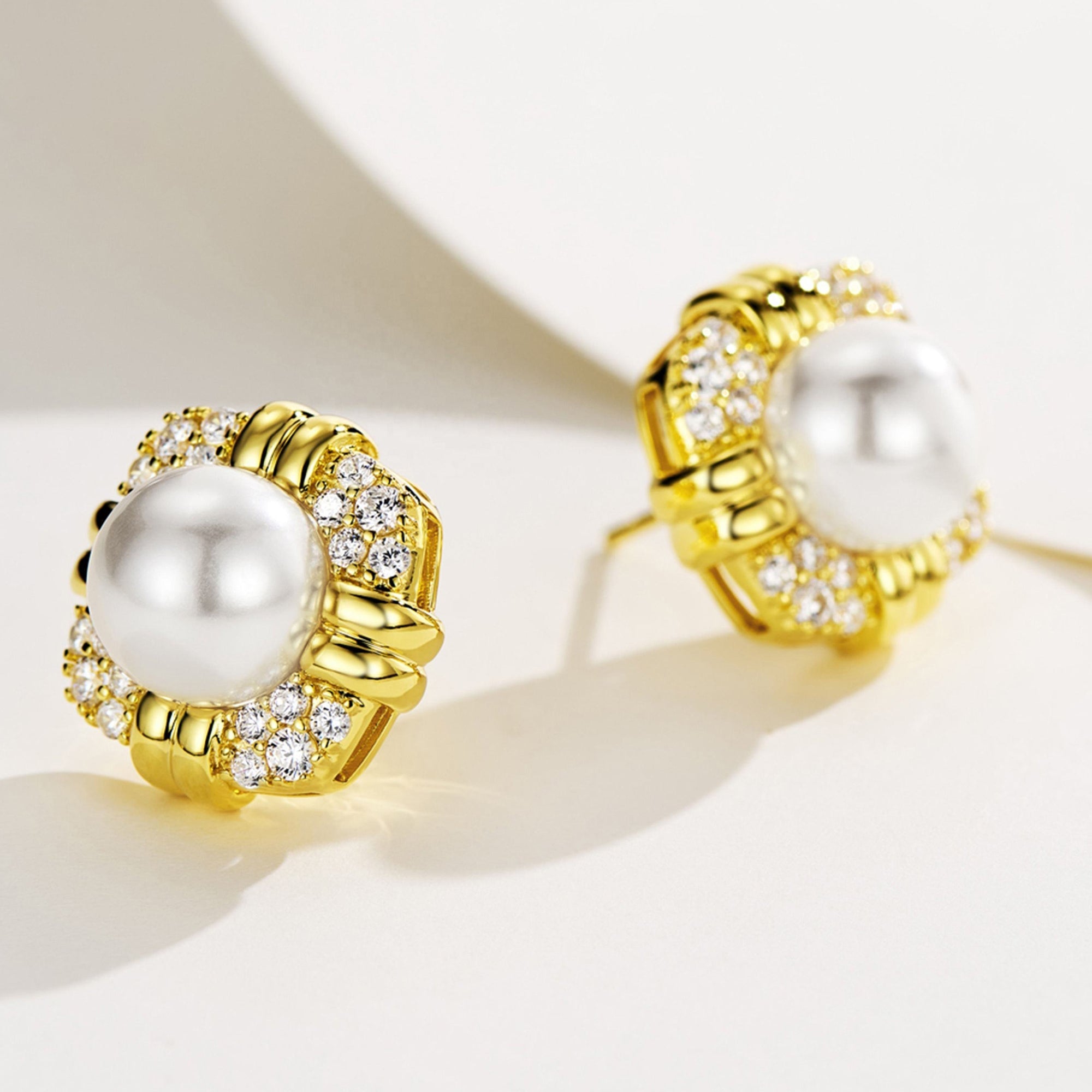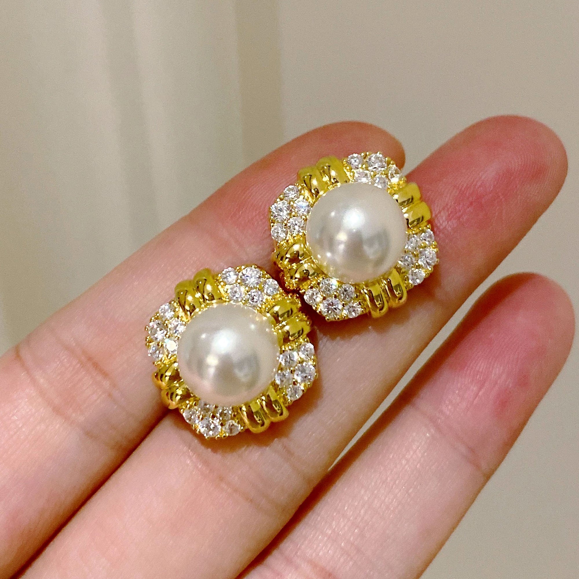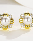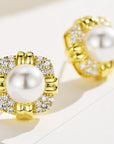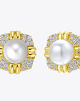 Cercei Vintage cu Perlă 10 mm din Argint Masiv 925 Placat cu Aur Galben și Zircon 5A