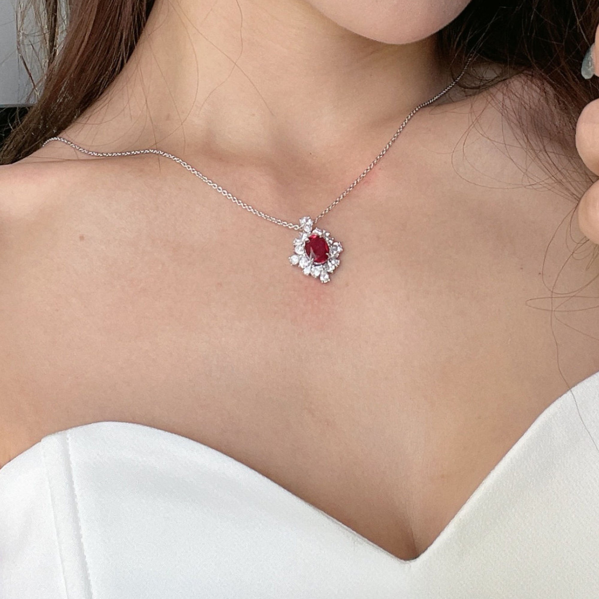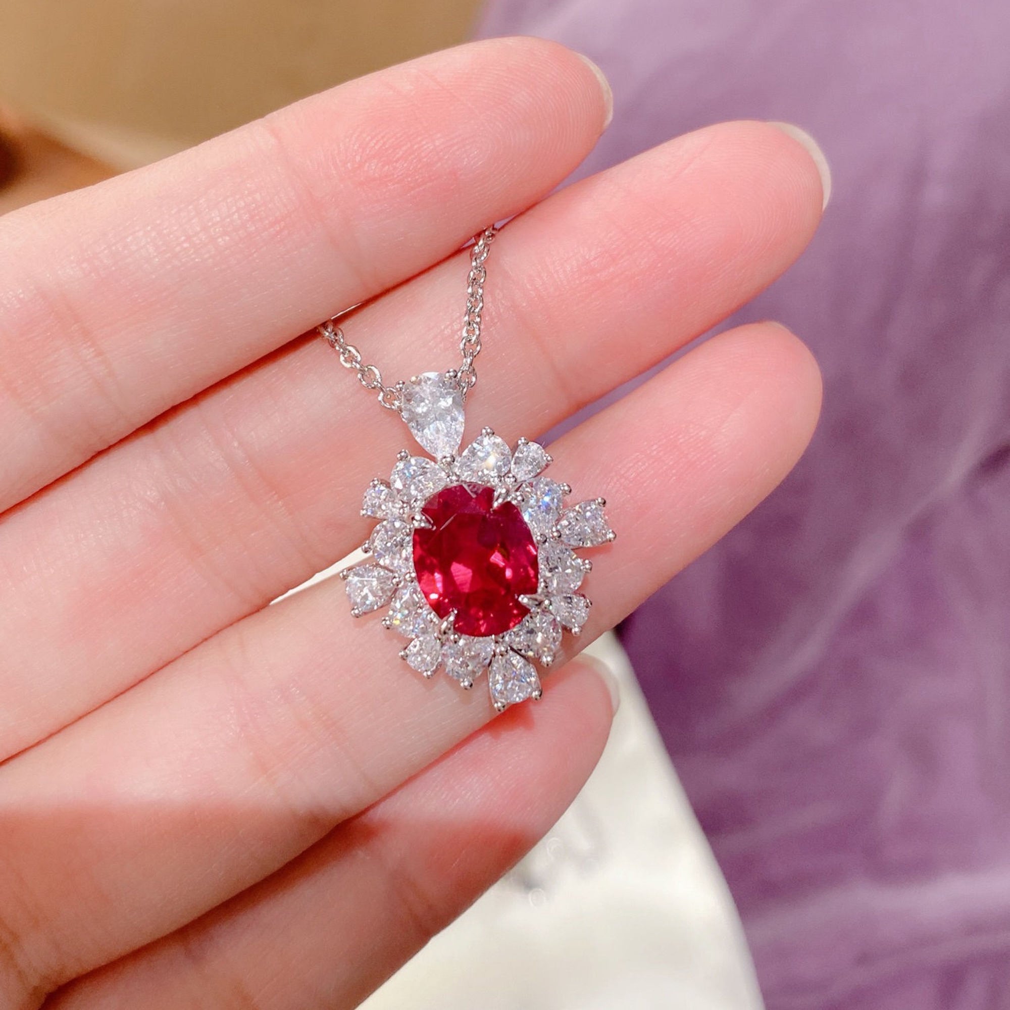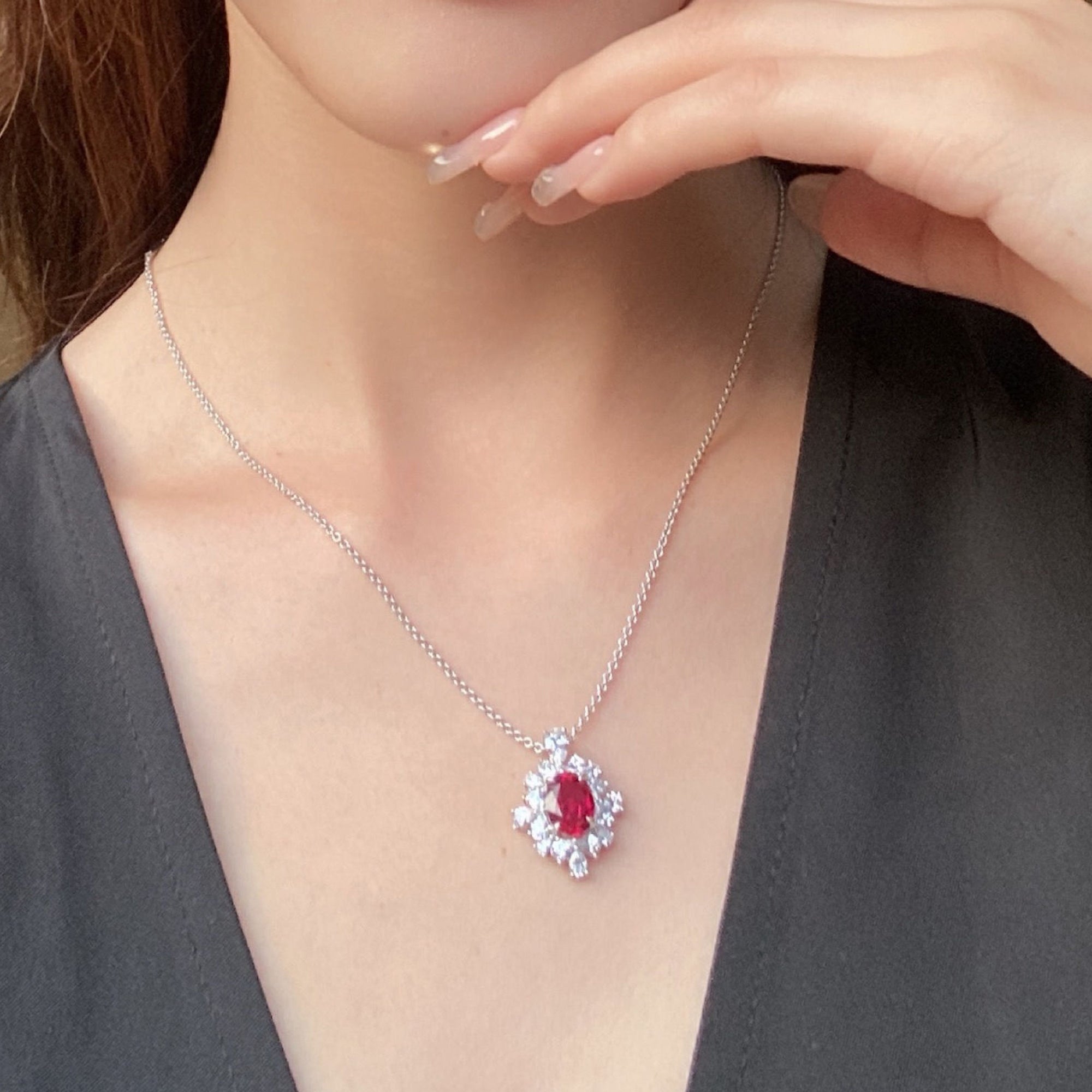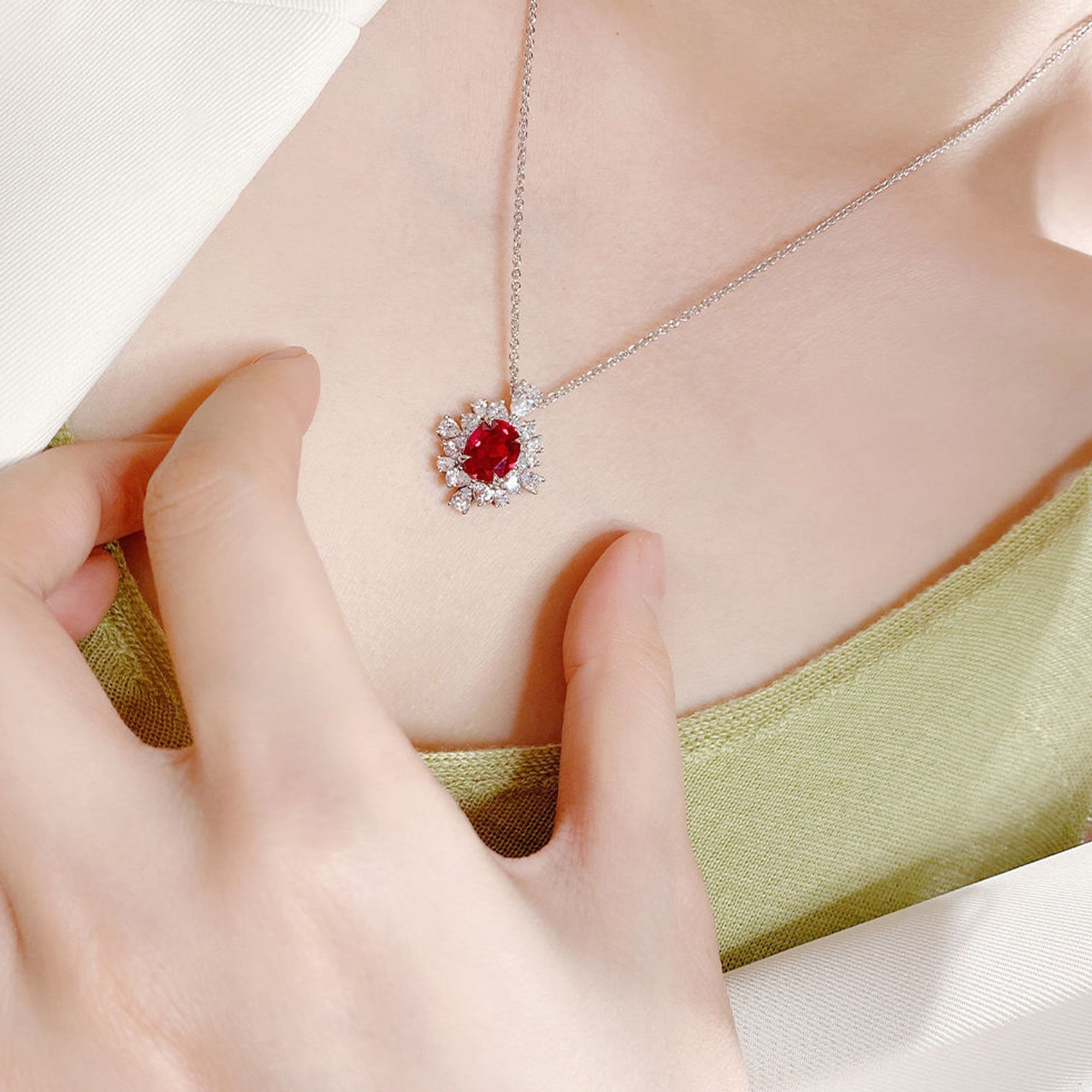 Colier Pendant Nobil din Argint 925 cu Piatra Rosie Zircon 5A