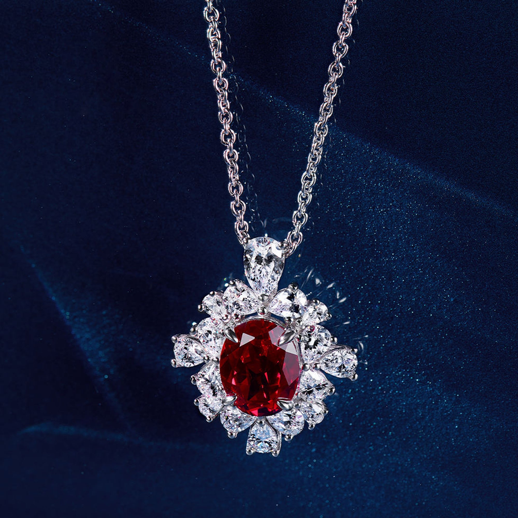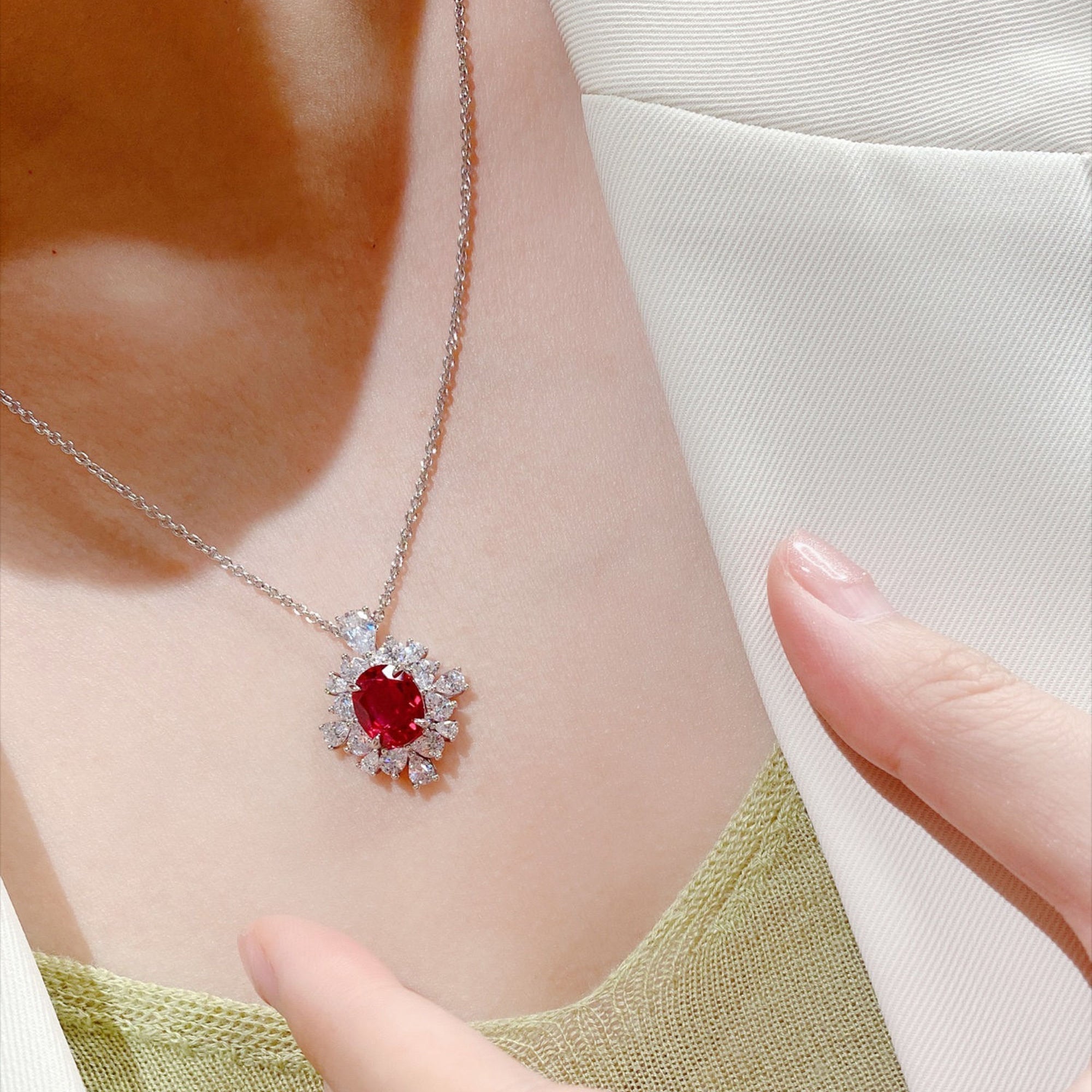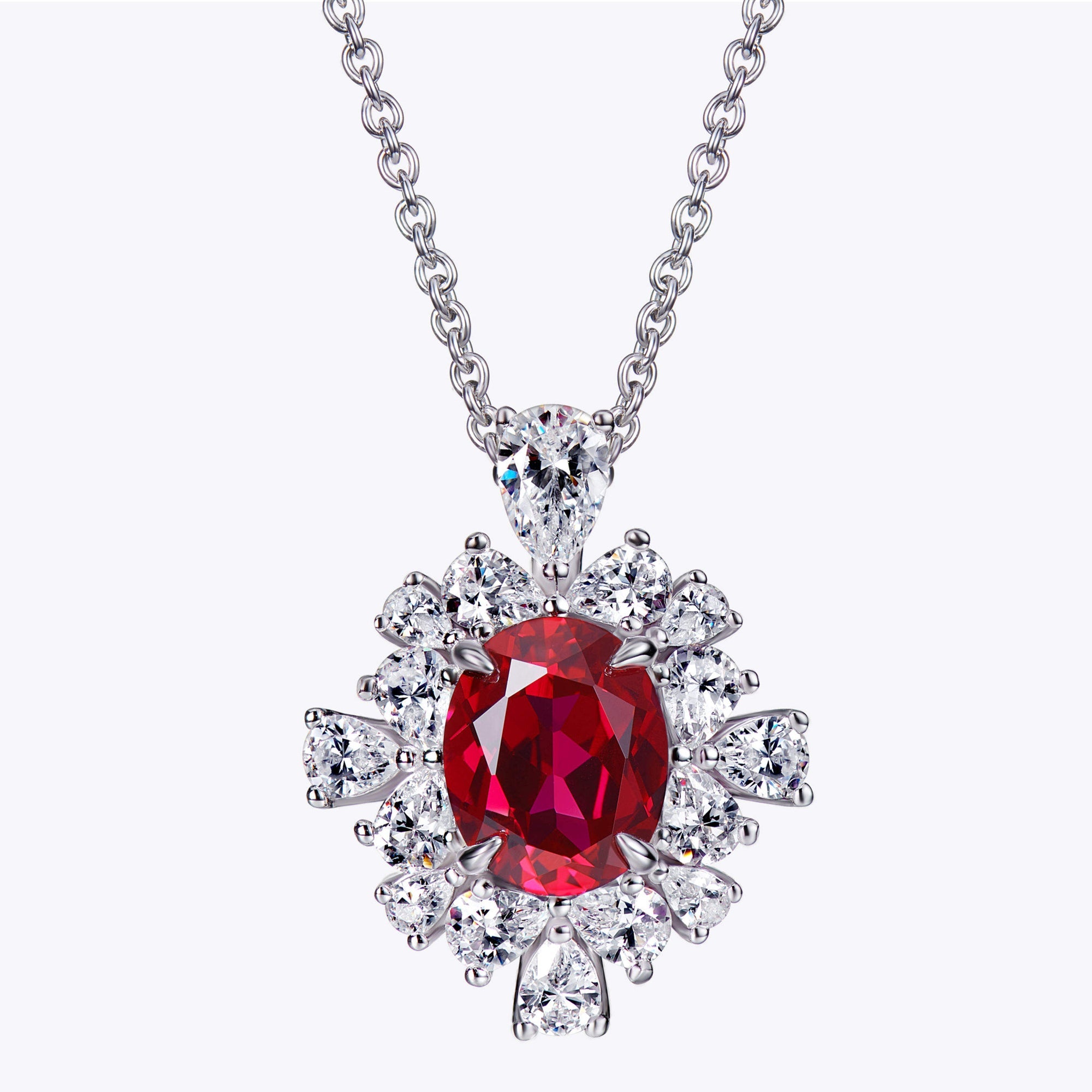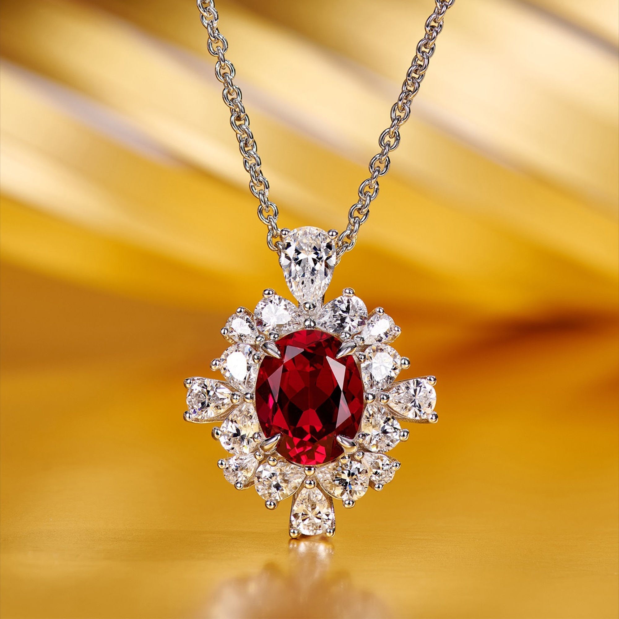 Colier Pendant Nobil din Argint 925 cu Piatra Rosie Zircon 5A