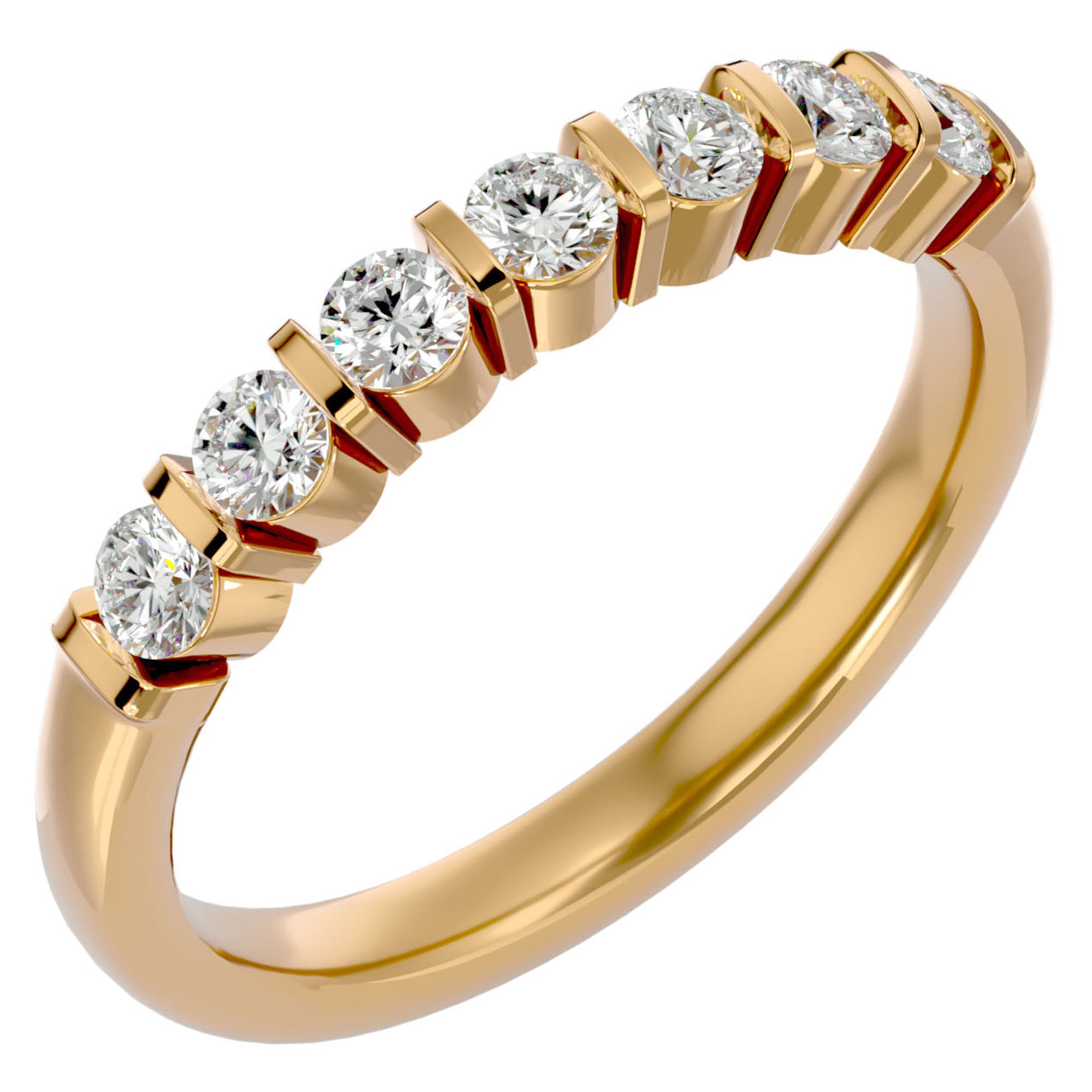 Inelul, cu o greutate totală de 0.52 carate, este încrustat cu șapte diamante naturale, fiecare selectat cu măiestrie pentru claritatea și strălucirea sa excepțională. Fiecare piatră este meticulos montată pe un band de Aur de 18k, disponibil în nuanțe de Aur Alb, Aur Galben, Aur Roz, sau Platina - alegerea perfectă pentru a completa orice ținută cu un strop de nobilime.