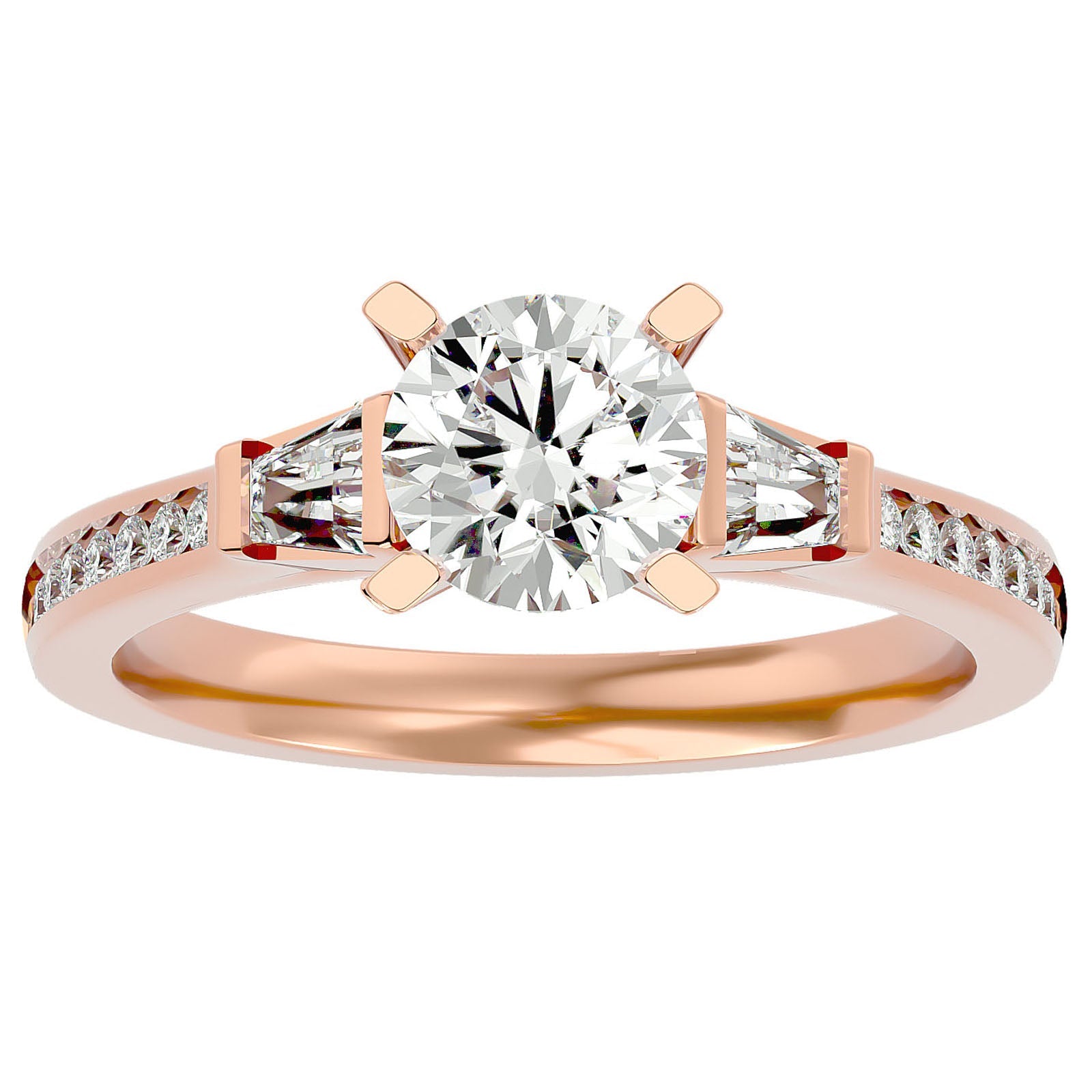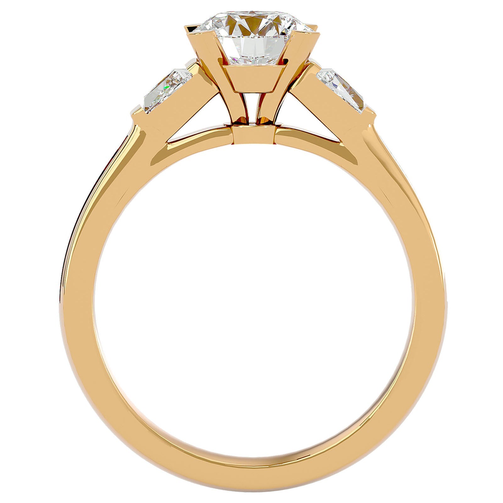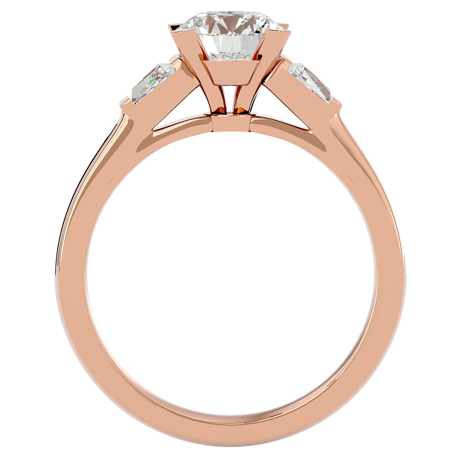 Inelul de Logodnă este finisat din aur de 14k și este oferit în variantele de Aur Alb, Aur Galben, Aur Roz sau Platina, permițând o personalizare completă pentru a se potrivi perfect cu stilul unic al purtătorului. Designul inelului, cu trei diamante principale înconjurate de un pavé de diamante mai mici, este meticulos conceput pentru a maximiza reflecția luminii, creând o lumină spectaculoasă și o prezență impunătoare.