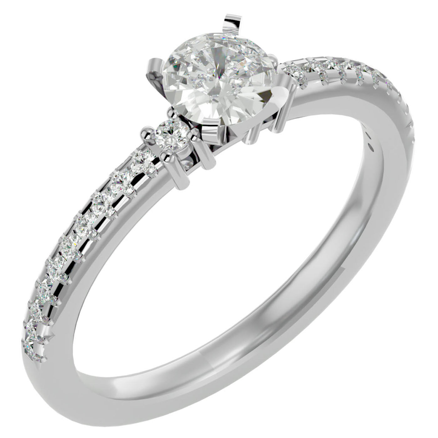 Inelul Atena este încrustat cu trei moissanite Pavè, cu o greutate totală de 0.39 carate, fiecare piatră fiind meticulos selectată pentru strălucirea și claritatea sa remarcabilă. Dispunerea acestor diamante pe montura inelului maximizează reflecția luminii, creând un efect de luminozitate și eleganță care atrage privirile și încântă simțurile.