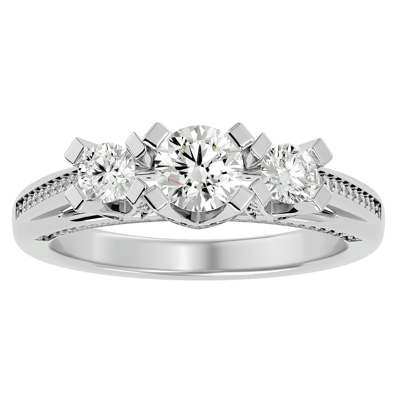 Inel de Logodnă Aurora din Aur 14k cu Trei Moissanite Pavè de 1.19 ct