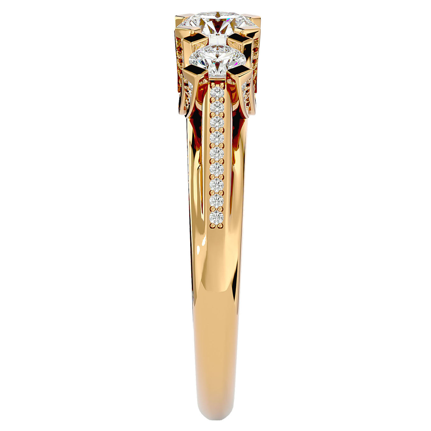 Montura de Aur de 14k, disponibilă în opțiuni de Aur Alb, Aur Galben, Aur Roz sau Platina, adaugă o notă suplimentară de sofisticare și un fundament solid pentru diamantele impresionante. Designul inelului Aurora, cu linii elegante și proporții armonioase, este inspirat de simbolismul și estetica unei epoci de aur, fiind perfect pentru cei care își doresc o bijuterie ce rămâne atemporală și valoroasă peste generații.