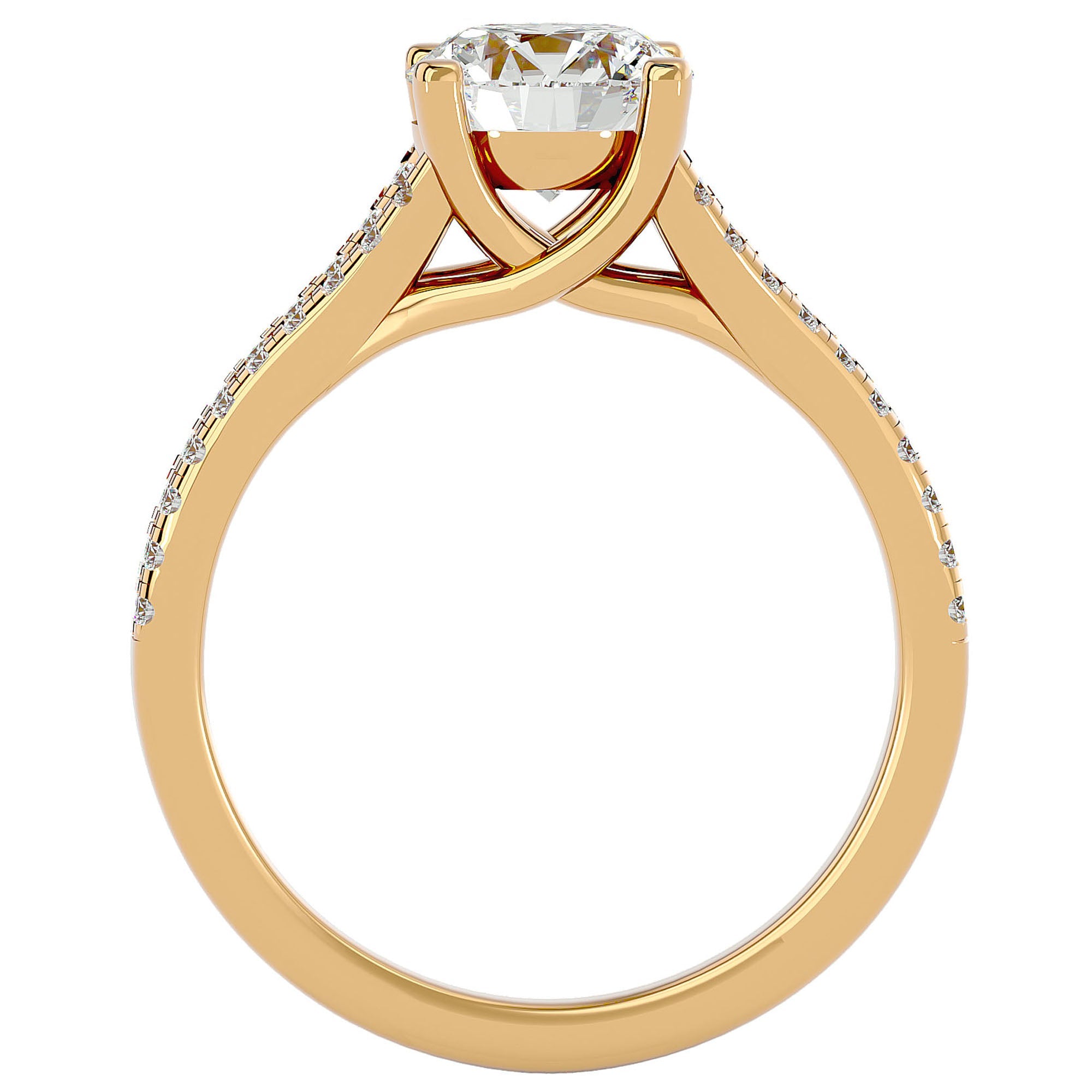 Încântați-vă privirile cu rafinamentul regal și eleganța desăvârșită a inelului de logodnă cu moissanite tăietură Rotund Brilliant, o bijuterie ce reflectă noblețea și prestigiul aristocratic. Fin lucrat din aur de 14k, acest inel splendid vă oferă posibilitatea de a alege între aur alb, aur galben, aur roz sau platina, adaptându-se perfect stilului dumneavoastră sofisticat.