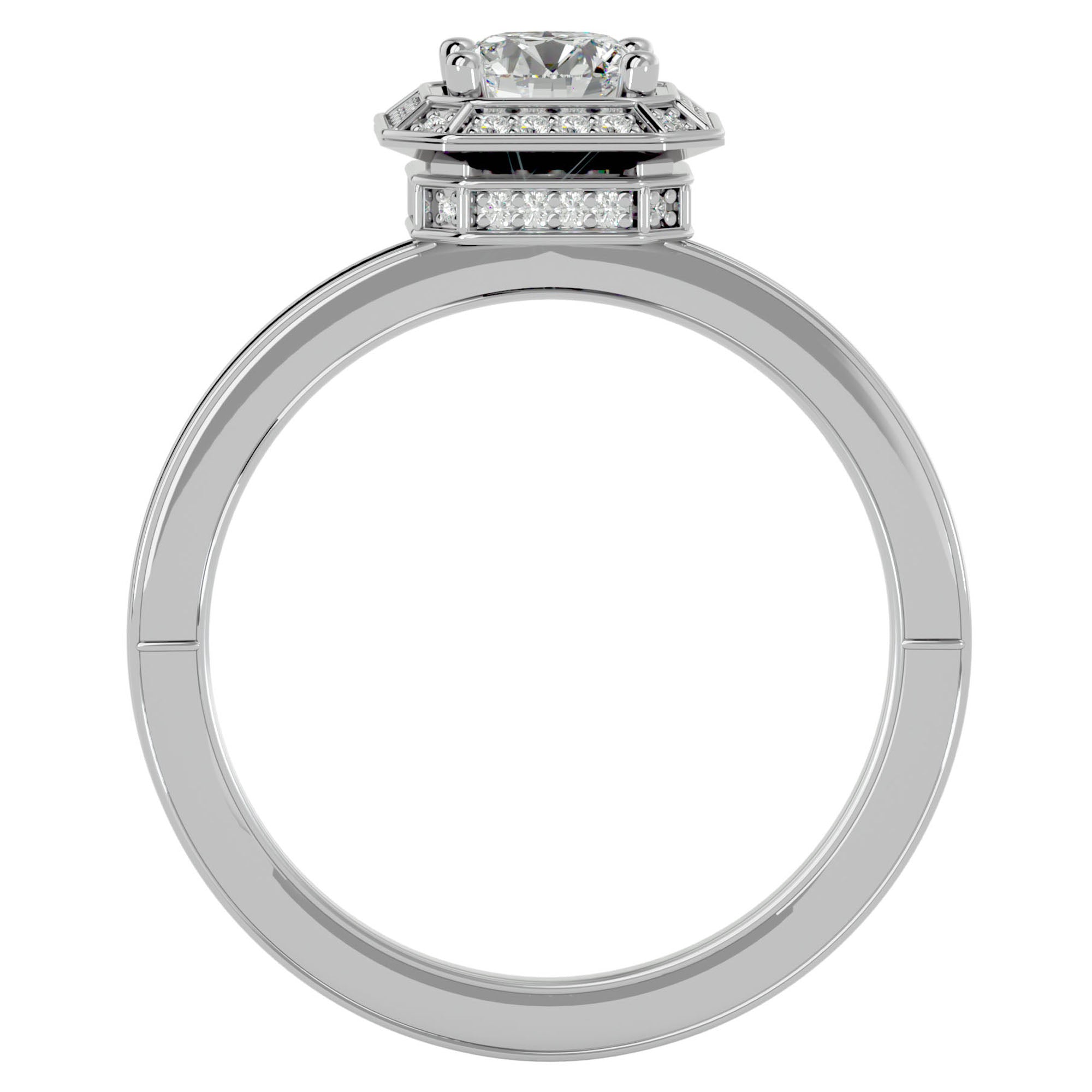 Designul inelului este o adevărată capodoperă, cu diamante naturale de 0.78 ct dispuse într-un Halo Etern în Crescendo. Fiecare diamant, ales cu o atenție deosebită, strălucește magnific, capturând și reflectând lumina într-un dans fascinant de sclipiri. Halo-ul Etern în Crescendo simbolizează o iubire în continuă creștere și durabilitate, un omagiu adus legăturii profunde dintre două suflete.