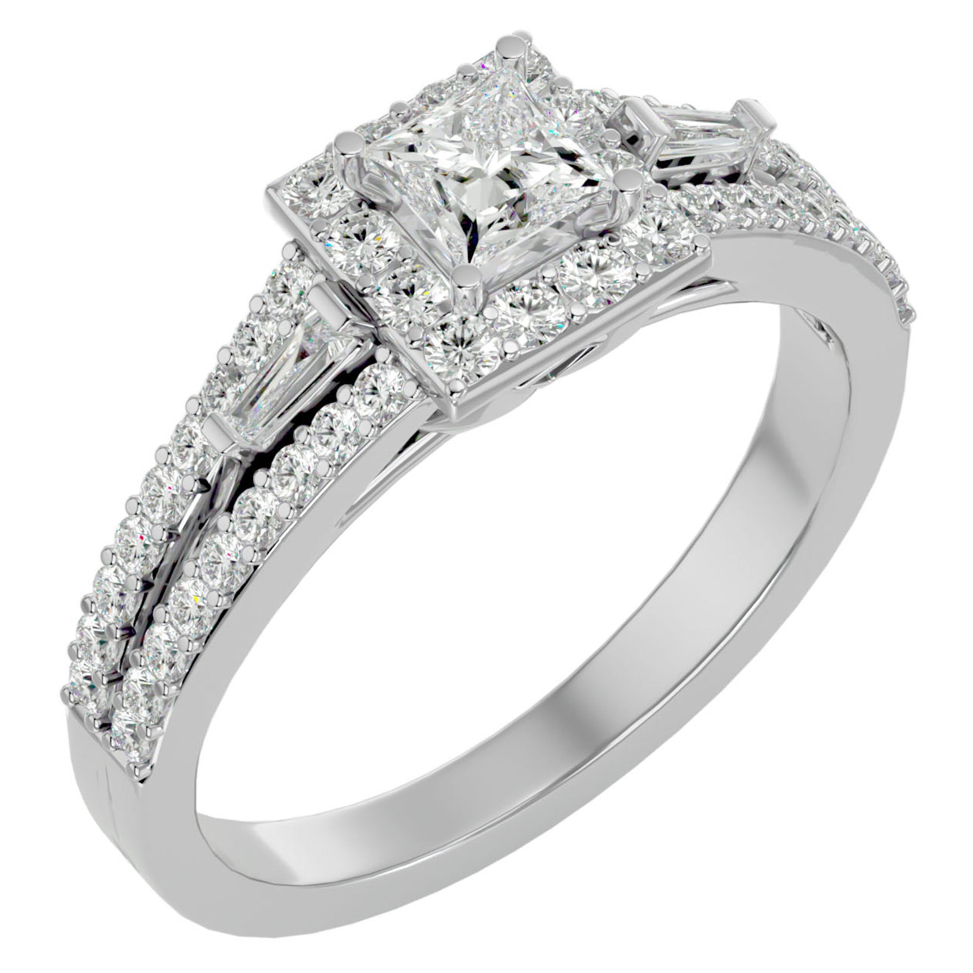 Inel de Logodnă cu Diamante Naturale Halo Princess Pavé de 1.00 ct