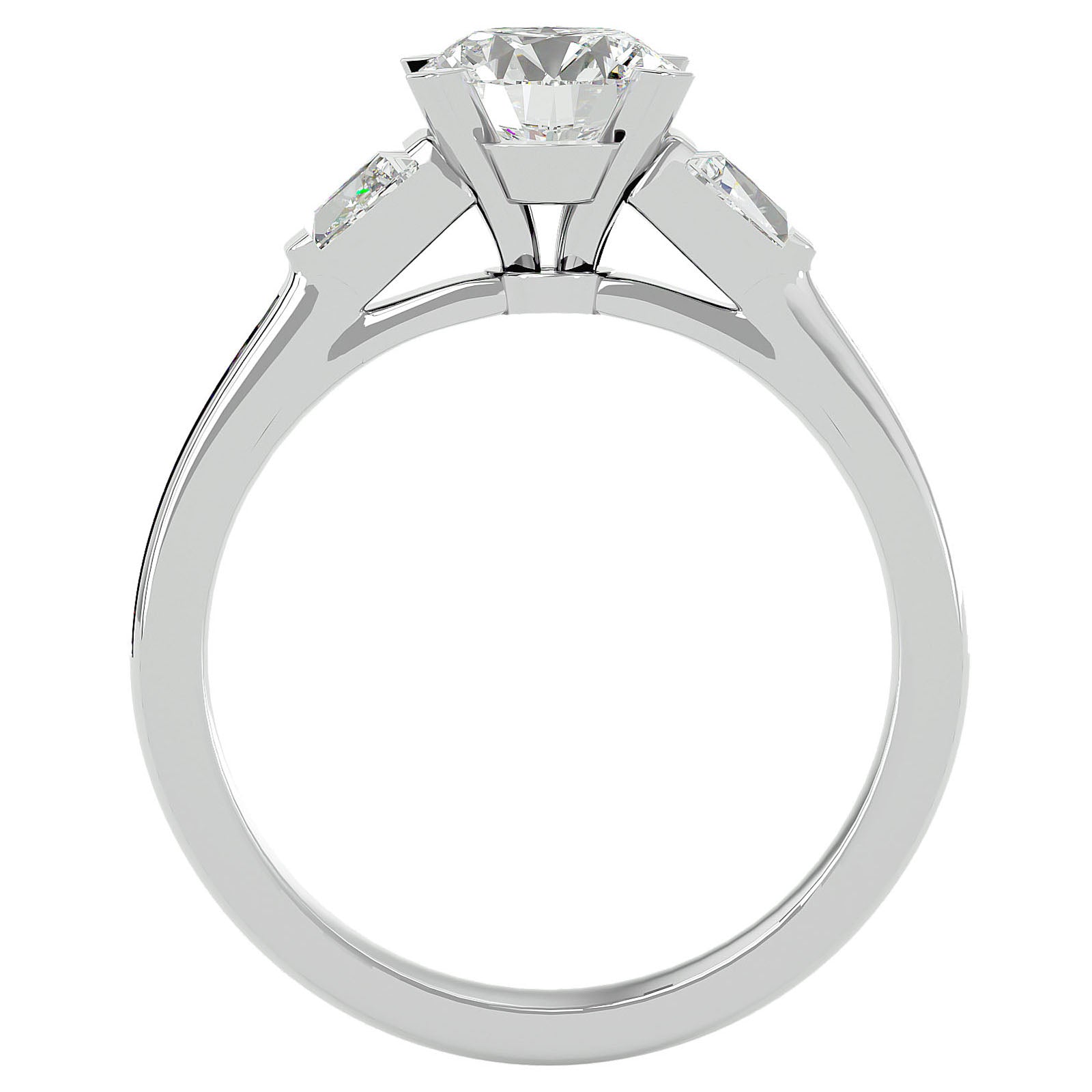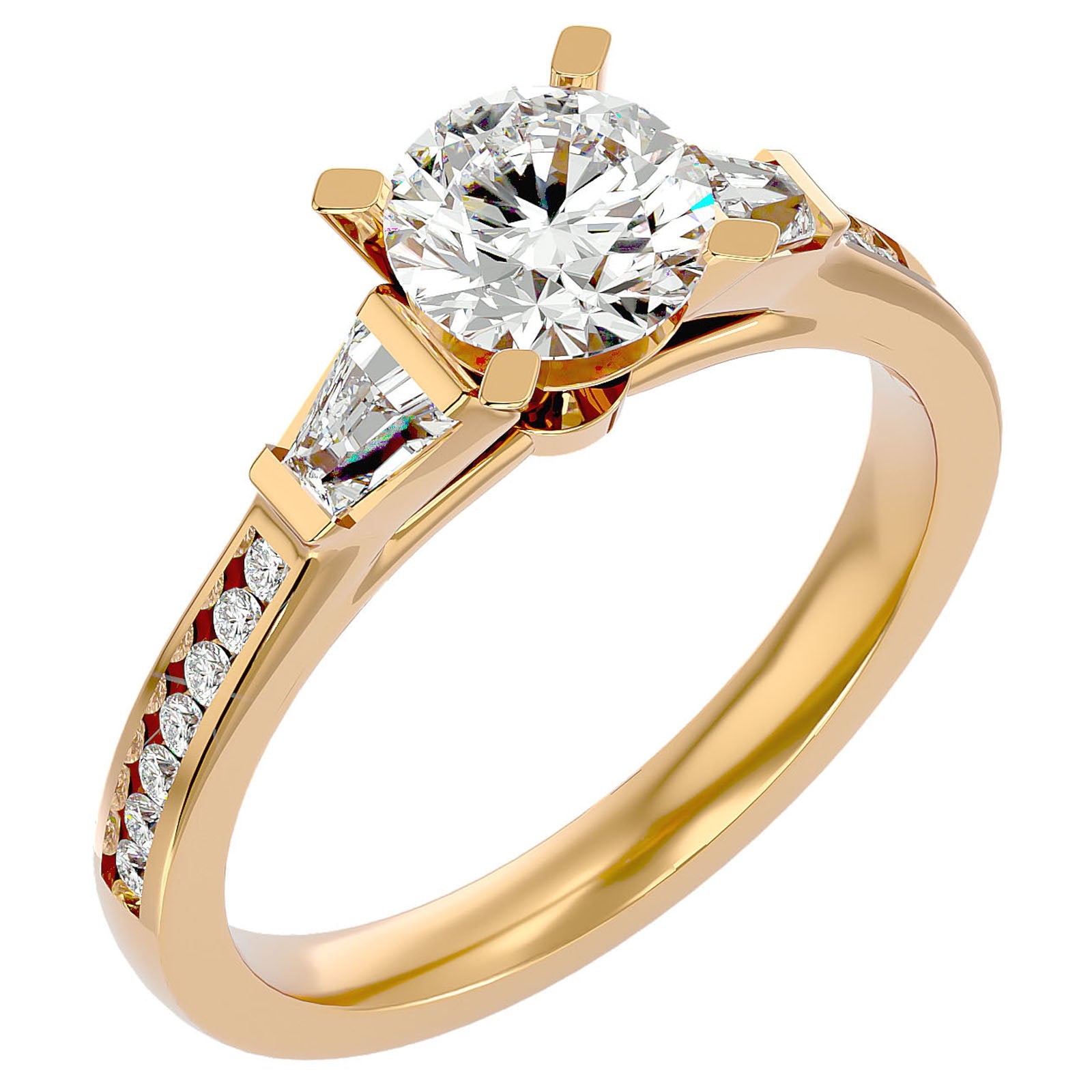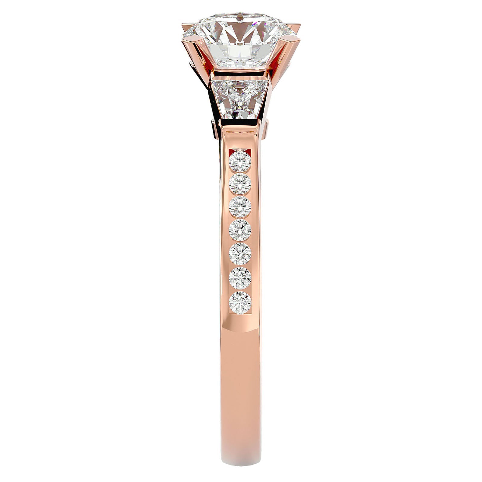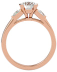 Inelul de Logodnă este finisat din aur de 18k și este oferit în variantele de Aur Alb, Aur Galben, Aur Roz sau Platina, permițând o personalizare completă pentru a se potrivi perfect cu stilul unic al purtătorului. Designul inelului, cu trei diamante principale înconjurate de un pavé de diamante mai mici, este meticulos conceput pentru a maximiza reflecția luminii, creând o lumină spectaculoasă și o prezență impunătoare.