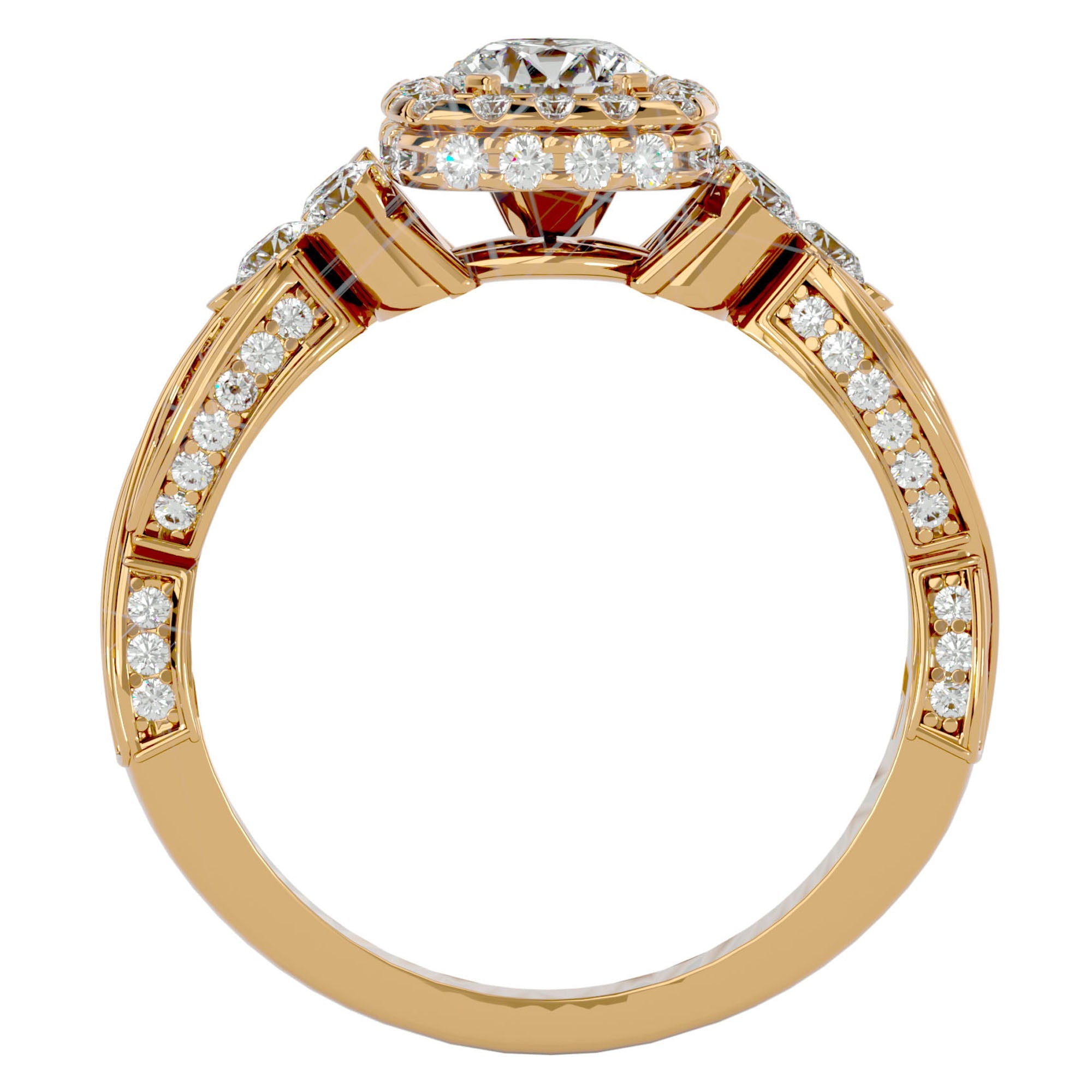 Designul acestui inel este o adevărată operă de artă, având în centru un diamant magnific înconjurat de un halo împletit pavé, toate create în laborator, însumând 1.32 ct. Fiecare diamant, ales cu cea mai mare grijă, strălucește intens, capturând și reflectând lumina într-un dans fascinant de sclipiri. Halo-ul Împletit Etern simbolizează legătura indestructibilă și iubirea eternă, transformând acest inel într-o declarație de stil și rafinament.