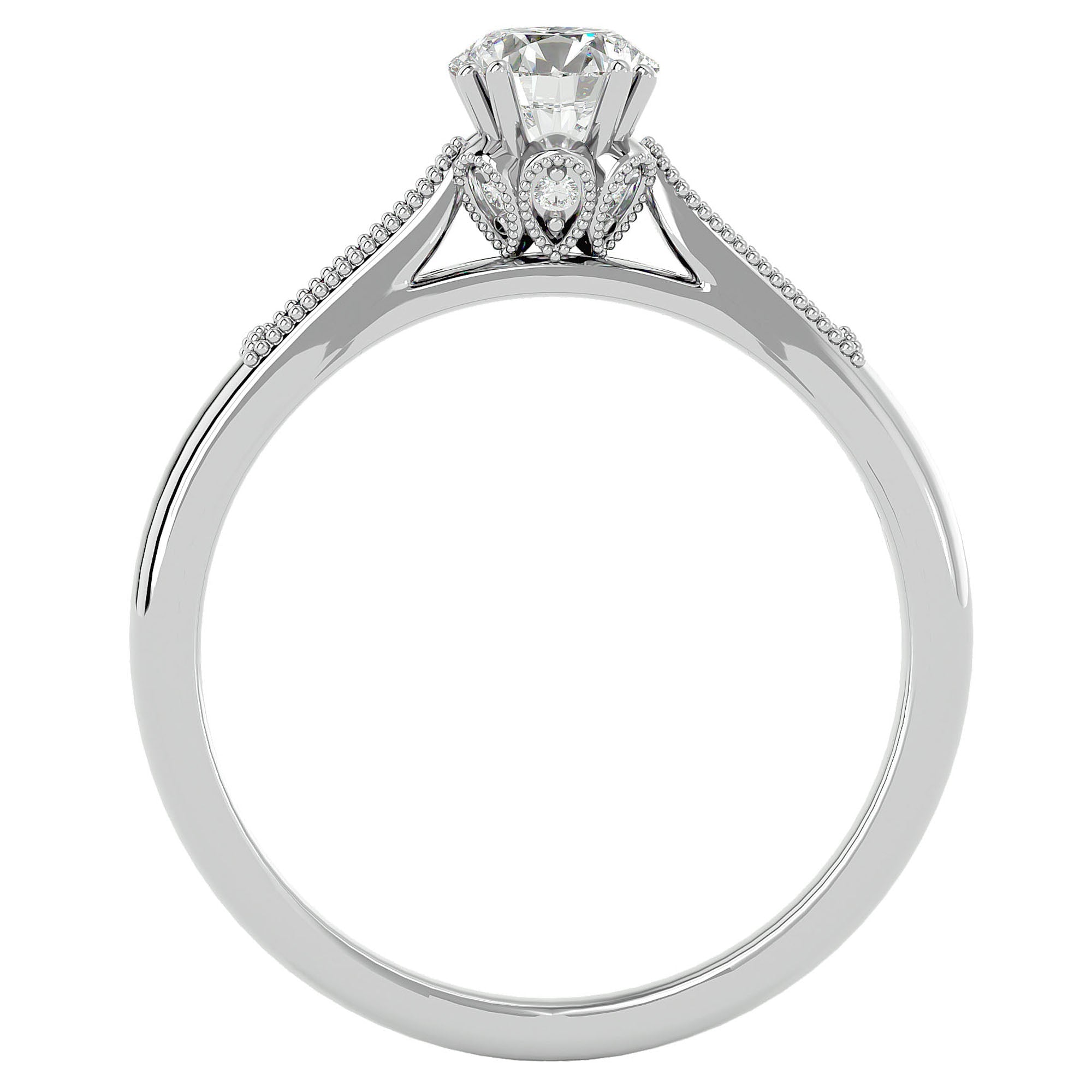 Designul acestui inel este o adevărată capodoperă, având în centru un diamant solitaire strălucitor de 0.77 ct, înconjurat de un pavé delicat de diamante create în laborator. Fiecare diamant, selectat cu grijă, emană o strălucire intensă, capturând și reflectând lumina într-un dans fermecător de sclipiri. Solitaire-ul Etern Pavé simbolizează iubirea pură și legătura indestructibilă dintre două suflete, transformând acest inel într-o declarație de stil și rafinament.