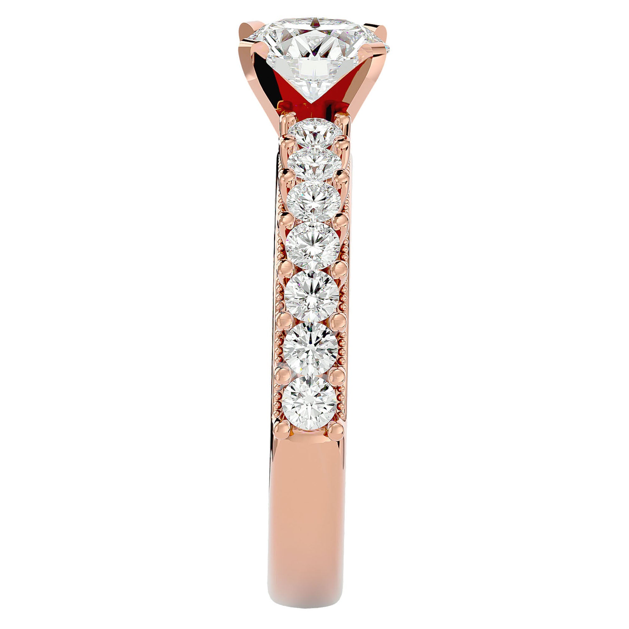 Designul acestui inel este o adevărată capodoperă, având în centru un diamant solitaire strălucitor de 2.53 ct, înconjurat de un pavé delicat de diamante create în laborator. Fiecare diamant, selectat cu grijă, emană o strălucire intensă, capturând și reflectând lumina într-un dans fermecător de sclipiri. Solitaire-ul Etern Pavé simbolizează iubirea pură și legătura indestructibilă dintre două suflete, transformând acest inel într-o declarație de stil și rafinament.