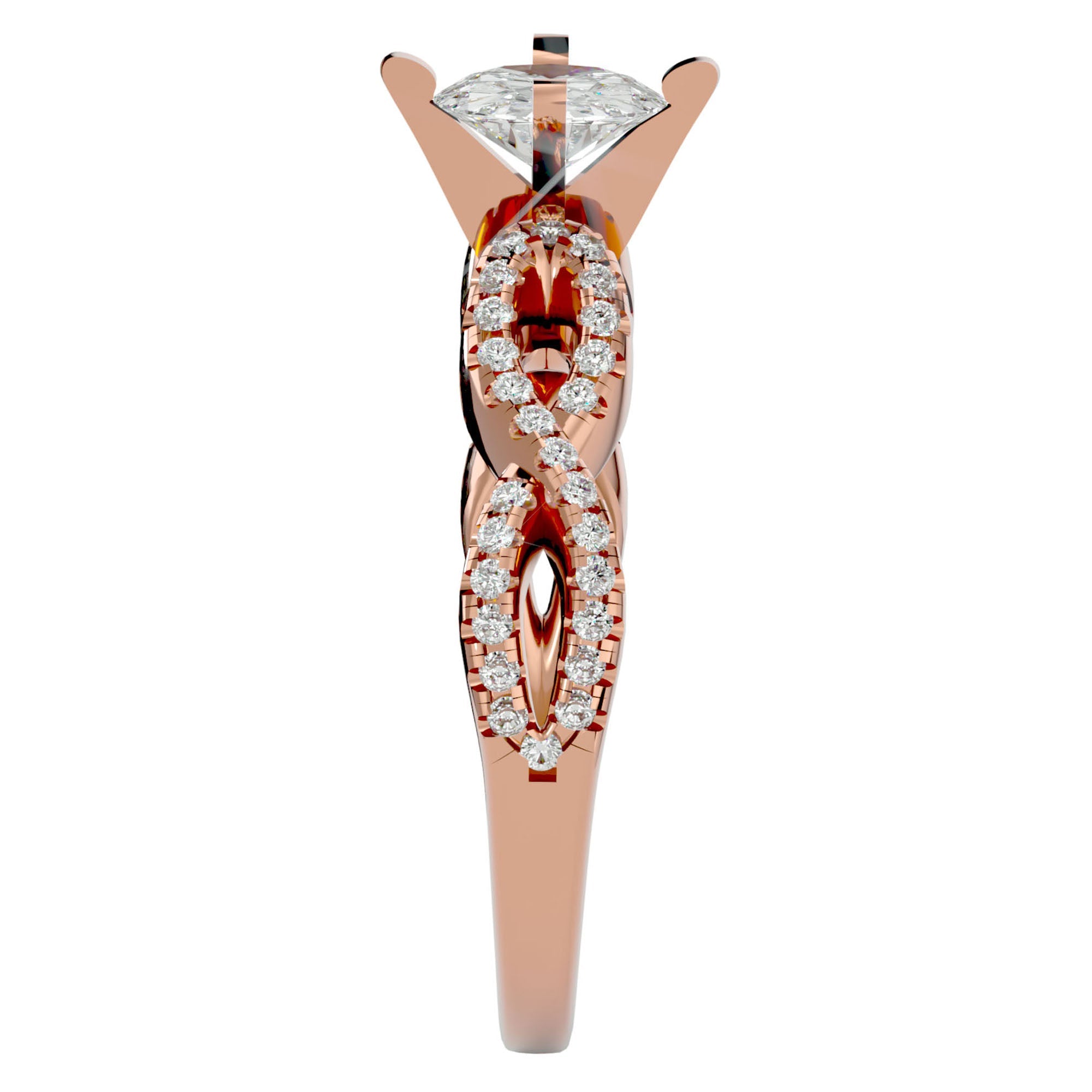 Designul acestui inel este o adevărată capodoperă, având în centru un diamant solitaire strălucitor de 0.79 ct, încadrat de un pavé împletit de diamante create în laborator. Fiecare diamant, ales cu grijă, emană o strălucire de neegalat, capturând și reflectând lumina într-un dans fascinant de sclipiri. Împletitura Eternă simbolizează legătura indestructibilă și iubirea eternă, transformând acest inel într-o declarație de stil și rafinament.