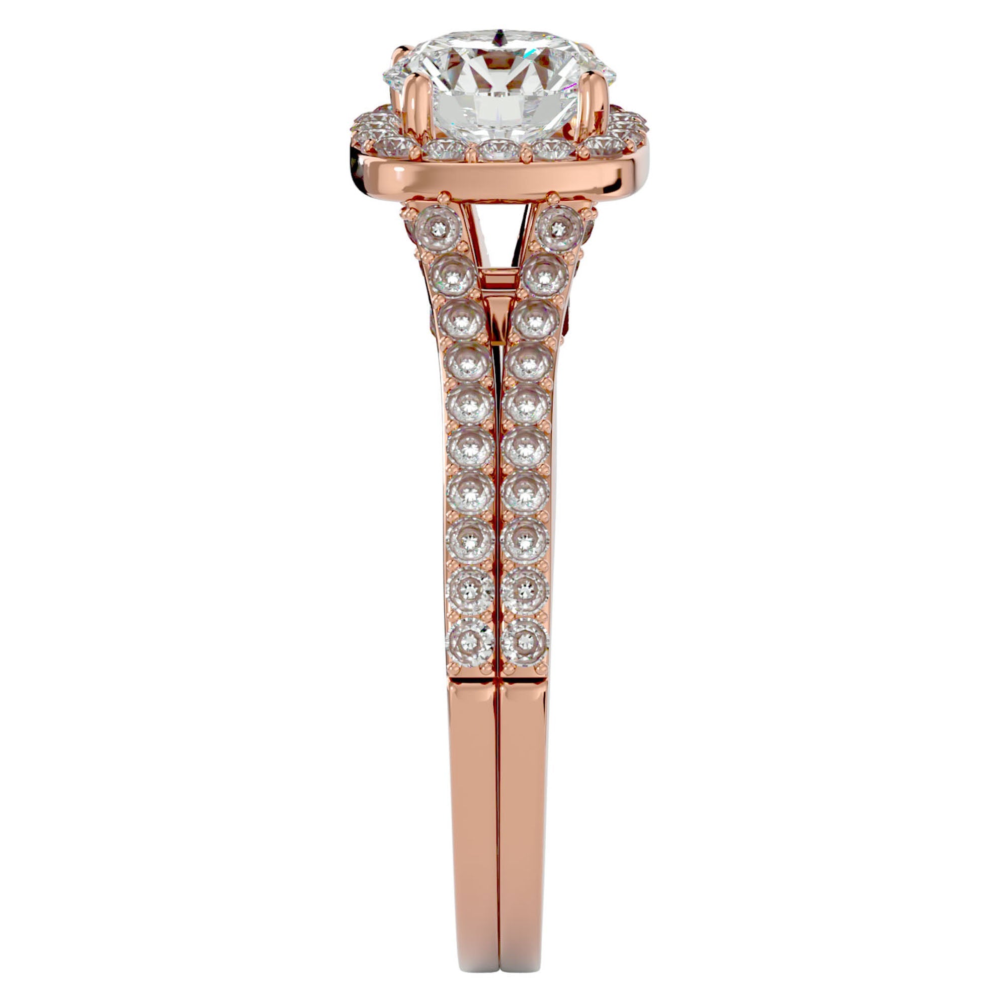 Designul inelului este o veritabilă capodoperă, cu diamante naturale de 1.78 ct dispuse într-un Halo Etern Pavé. Fiecare diamant, ales cu grijă, strălucește cu o intensitate de neegalat, capturând și reflectând lumina într-un dans fermecător de sclipiri. Halo-ul Etern Pavé simbolizează o iubire crescândă și durabilă, un omagiu adus legăturii profunde și eterne dintre două suflete.