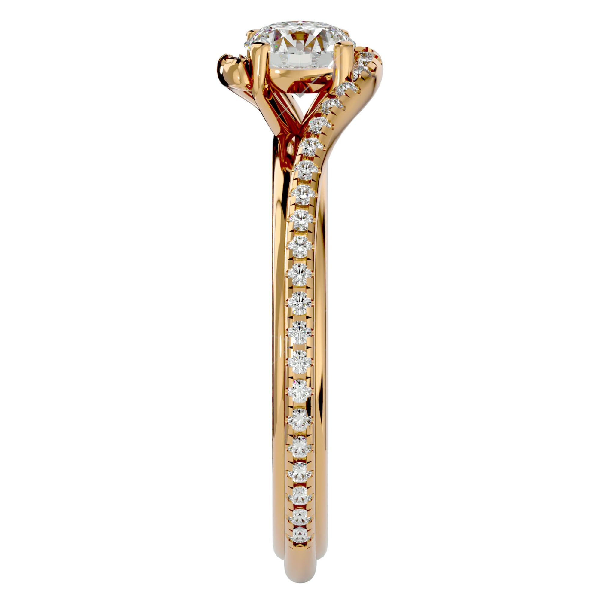 Designul inelului este o adevărată operă de artă, având diamante naturale de 0.88 ct dispuse cu măiestrie într-un pavé în spirală. Fiecare diamant este selectat cu atenție pentru a asigura o strălucire de neegalat, reflectând lumina într-un spectacol de eleganță și rafinament. Acest aranjament ingenios simbolizează infinitul și devotamentul etern, perfect pentru a celebra legătura voastră specială.