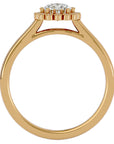 Designul inelului este o veritabilă operă de artă, cu moissanite de 0.60 ct dispuse într-un Halo Etern în Crescendo. Fiecare diamant, selectat cu grijă, strălucește magnific, capturând lumina și reflectând-o într-un dans de sclipiri hipnotizante. Halo-ul Etern în Crescendo simbolizează iubirea crescândă și durabilă, un omagiu adus legăturii profunde și eterne dintre două suflete.