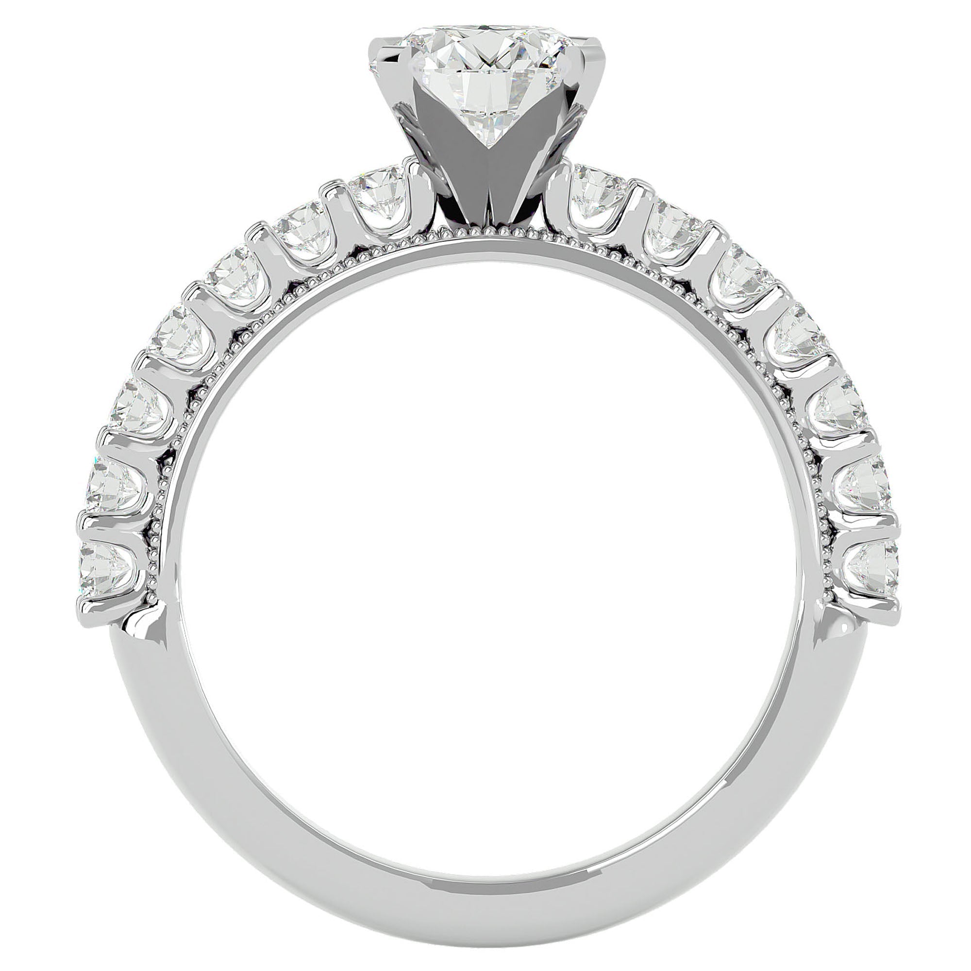 Designul acestui inel este o adevărată capodoperă, având în centru un diamant solitaire strălucitor de 2.53 ct, înconjurat de un pavé delicat de moissanite. Fiecare diamant, selectat cu grijă, emană o strălucire intensă, capturând și reflectând lumina într-un dans fermecător de sclipiri. Solitaire-ul Etern Pavé simbolizează iubirea pură și legătura indestructibilă dintre două suflete, transformând acest inel într-o declarație de stil și rafinament.