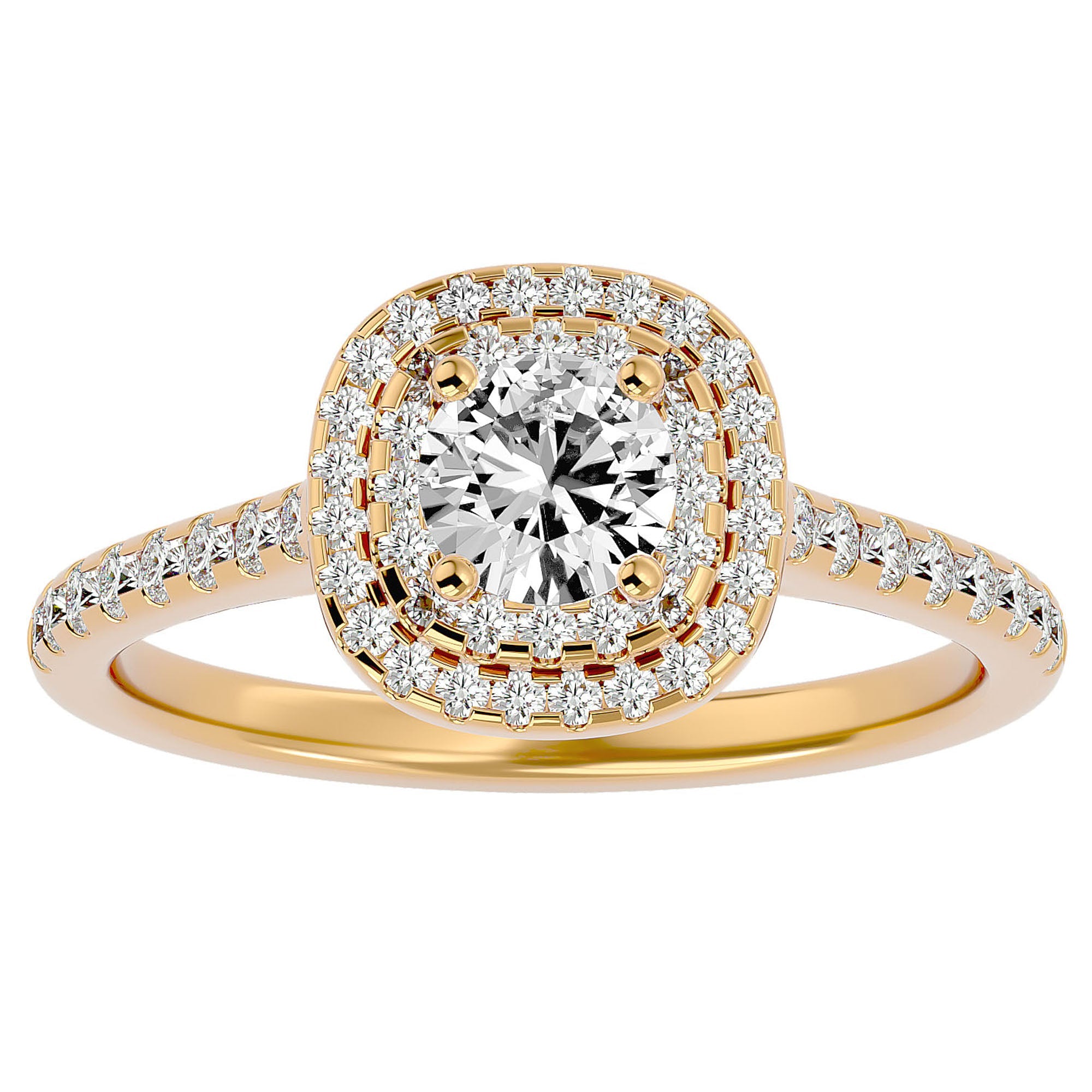 Inel De Logodnă din Aur 14k Cu Moissanite Tăietură Rotundă In Halo 0.90 ct