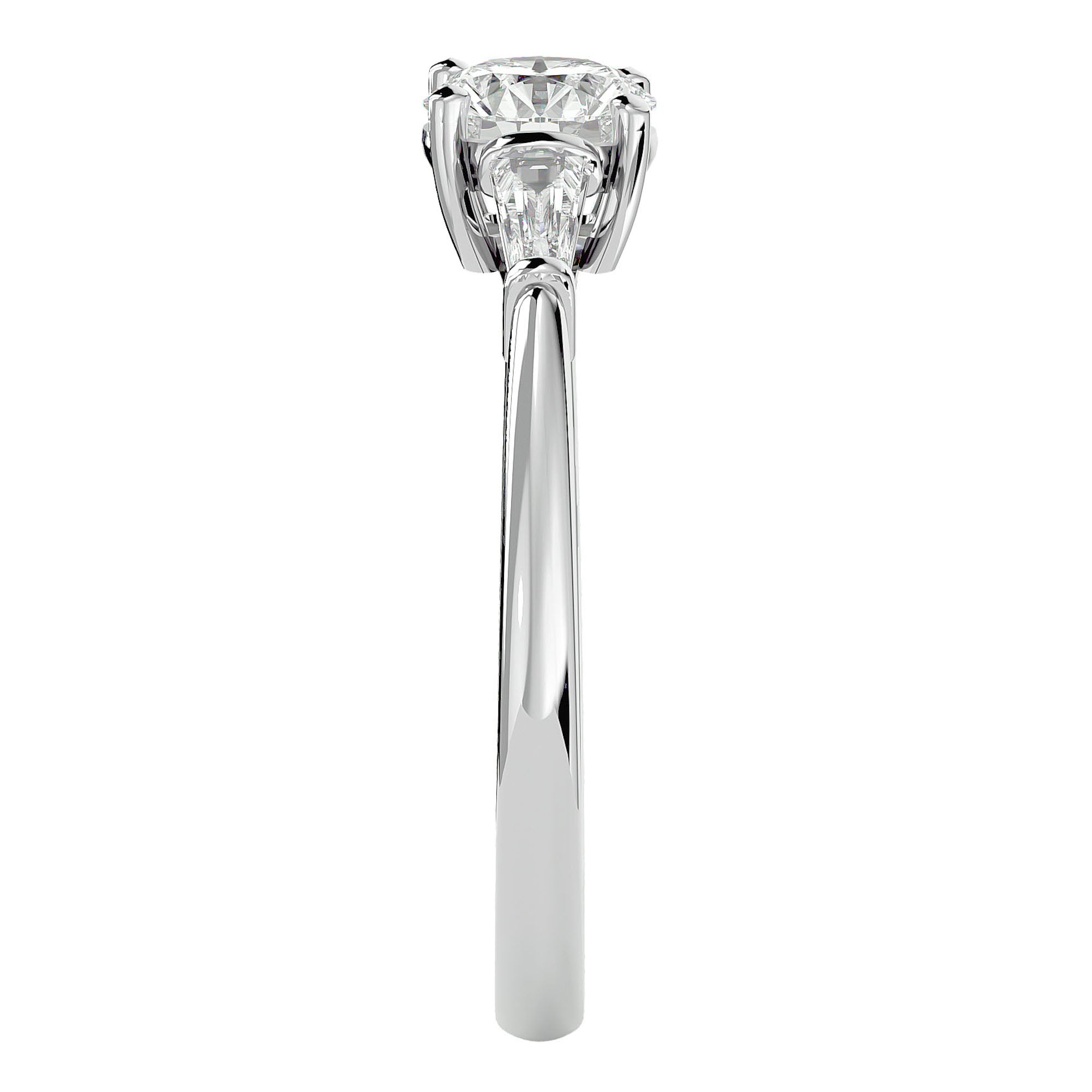Optați pentru Inelul de Logodnă cu Trei moissanite de 0.93 ct și transformați promisiunea dumneavoastră de dragoste într-o poveste scrisă sub semnul eleganței regale și al rafinamentului atemporal, marcând începutul unei vieți împreună cu splendoare și distincție.