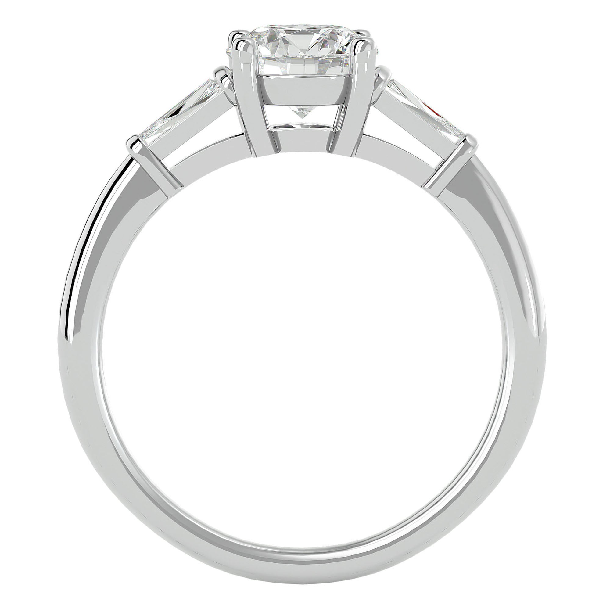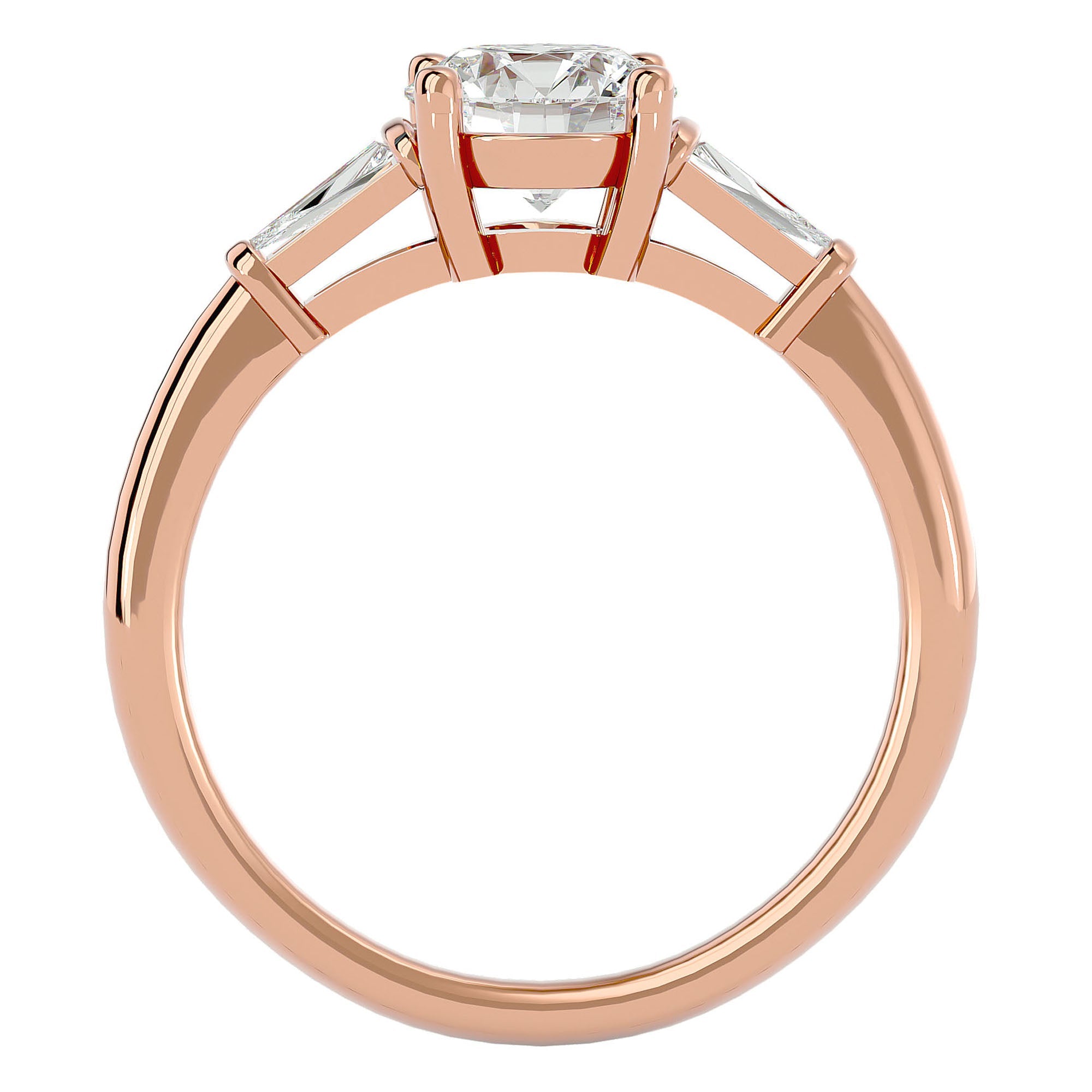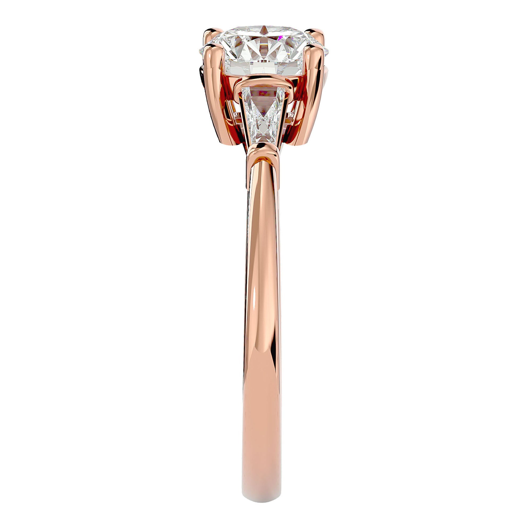 Inelul de Logodnă este finisat din aur de 14k și este disponibil în opțiunile de Aur Alb, Aur Galben, Aur Roz sau Platina, permițând o personalizare completă pentru a se potrivi perfect cu stilul unic al purtătorului. Designul inelului, cu trei diamante principale strălucitoare, este meticulos conceput pentru a maximiza reflecția luminii și pentru a oferi o lumină spectaculoasă și o prezență nobilă.