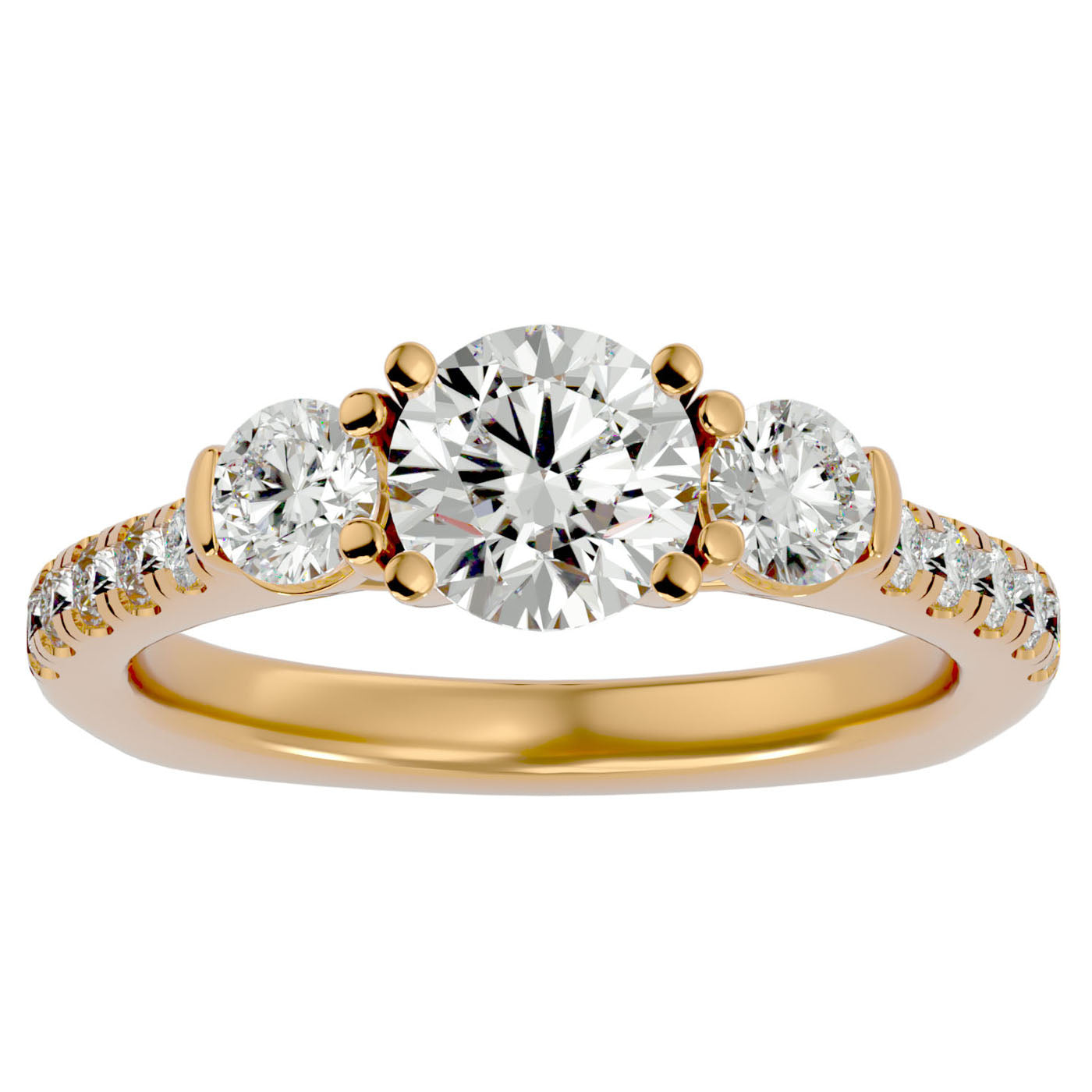 Inel de Logodnă din Aur 14k cu Trei Moissanite Pavè de 1.54 ct