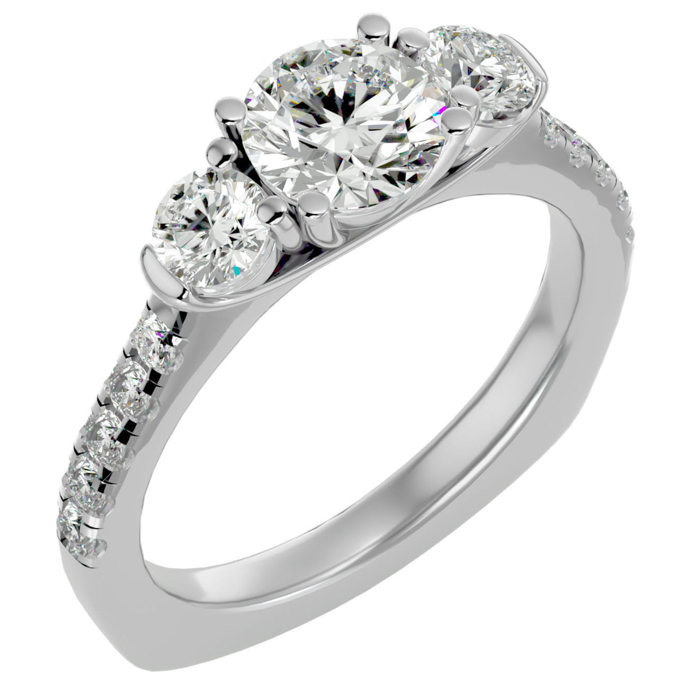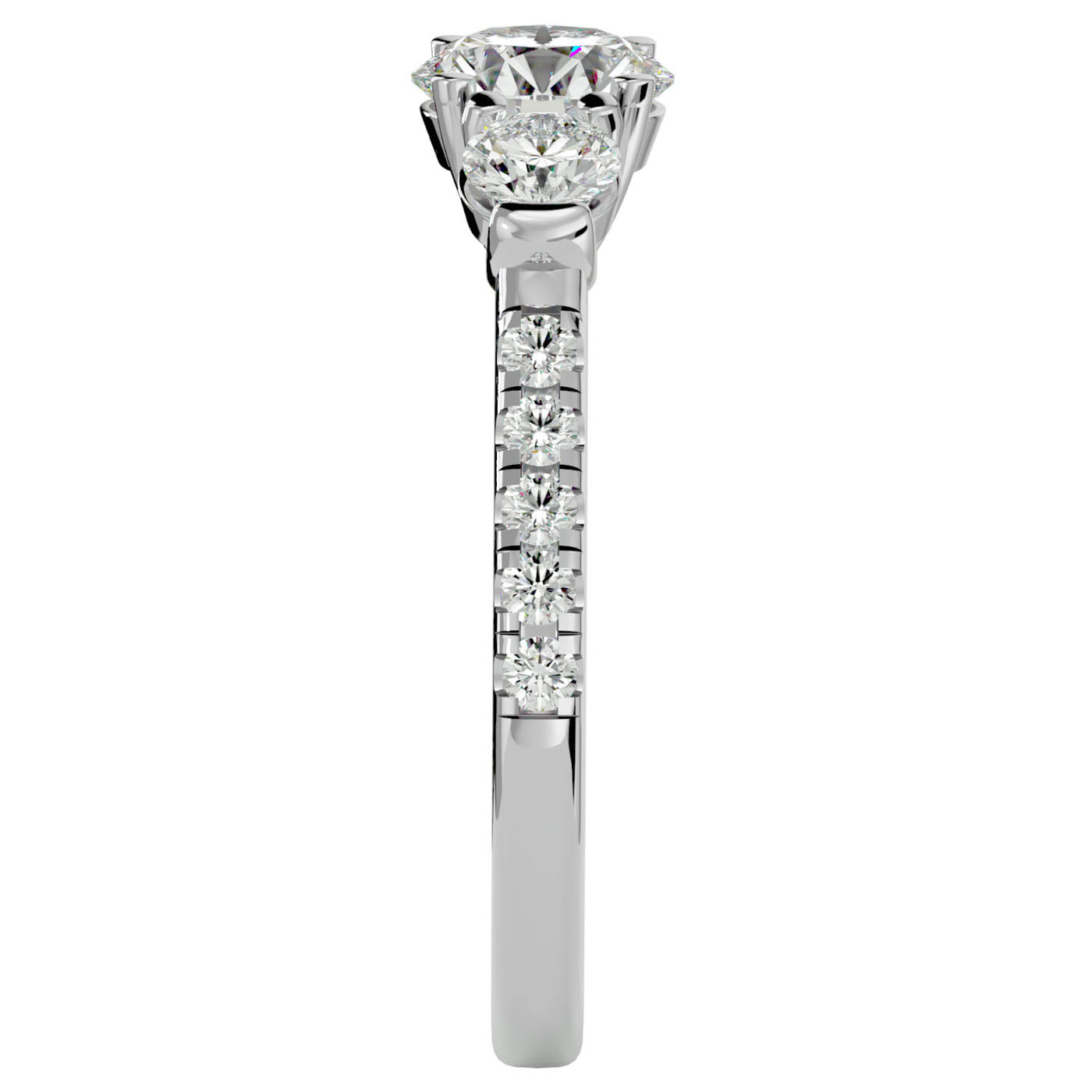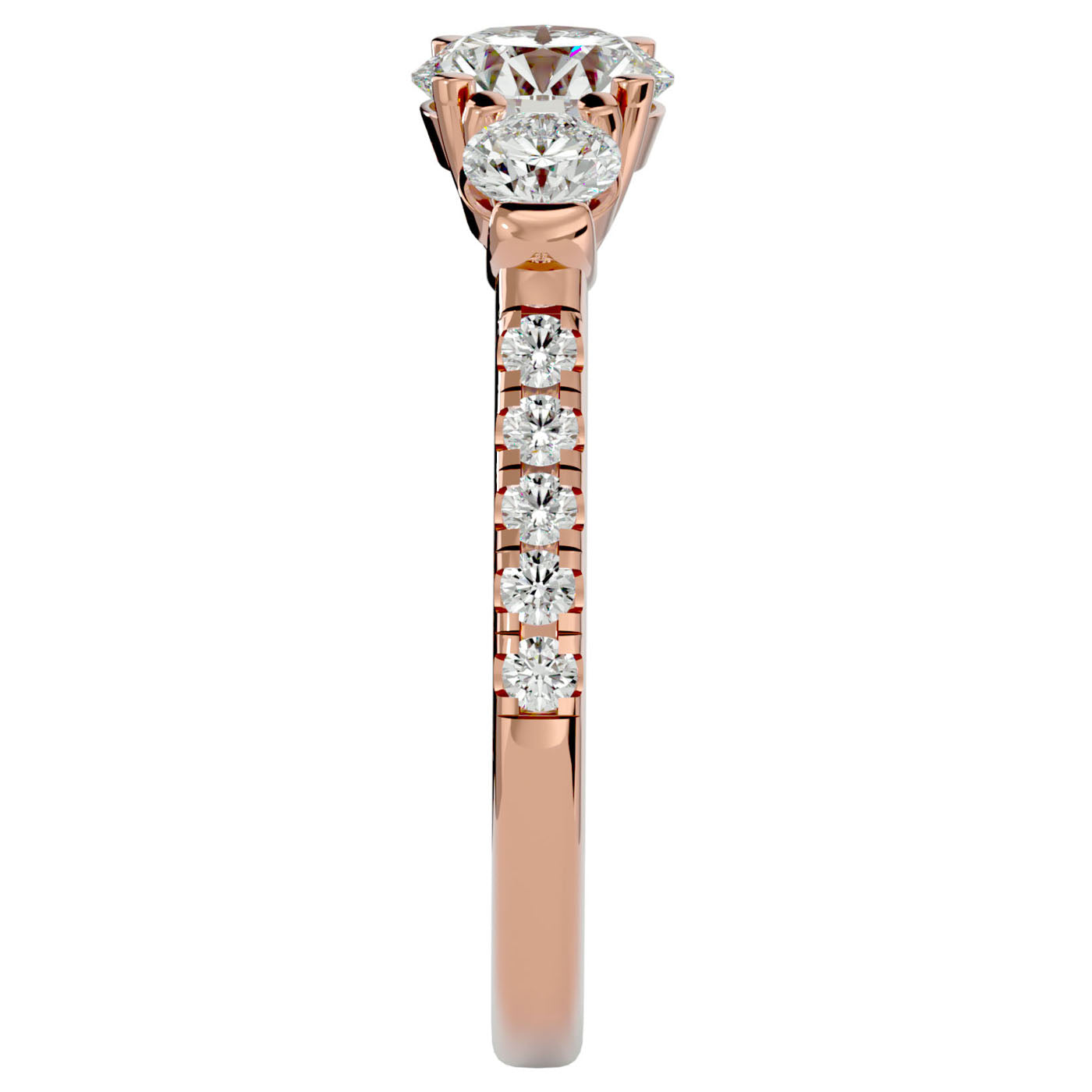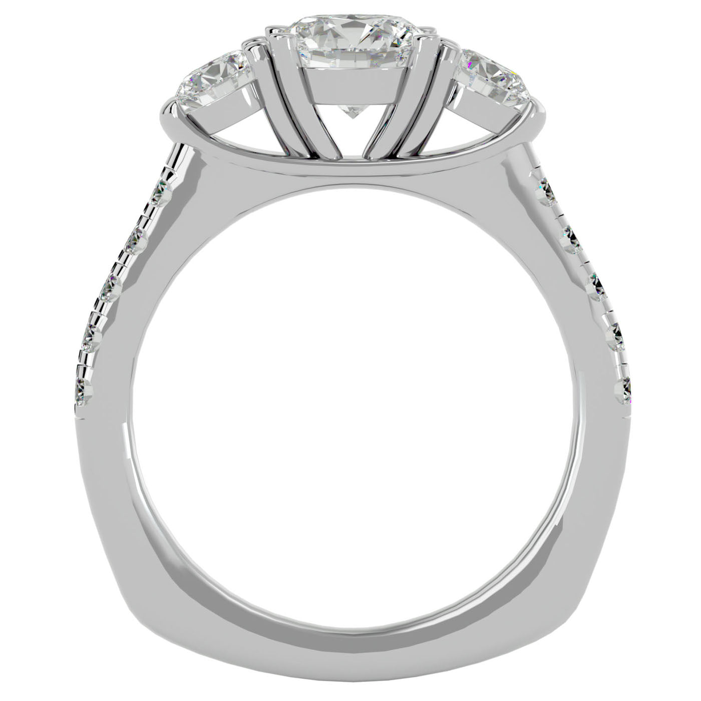 Prezintă Inelul de Logodnă cu Trei moissanite Pavè, o veritabilă bijuterie ce capturează esența unui lux rafinat și a unei eleganțe care traversează veacurile. Acest inel este creat pentru a aduce în prezent splendoarea și distincția unei epoci în care rafinamentul și nobilitatea defineau standardele de frumusețe.