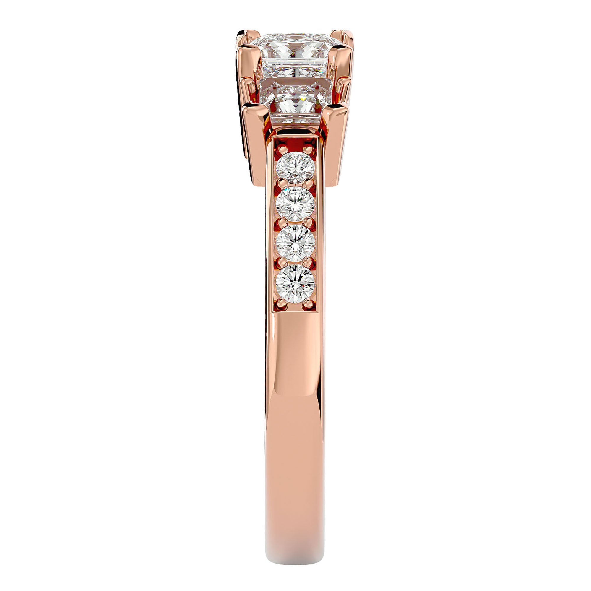 Inelul de Logodnă Tri-moissanite Pavè este finisat din aur de 14k și este disponibil în variantele de Aur Alb, Aur Galben, Aur Roz sau Platina, oferind astfel posibilitatea de a personaliza bijuteria pentru a se potrivi perfect cu stilul unic al purtătorului. Cele trei moissanite principale sunt însoțite de un pavé de diamante mai mici, fiecare meticulos așezat pentru a maximiza strălucirea și pentru a crea un efect vizual de o splendoare desăvârșită.