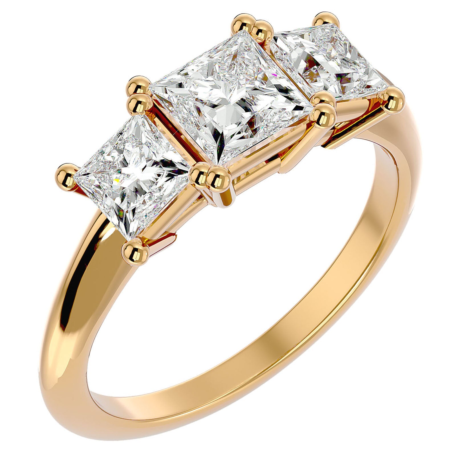 Inel de Logodnă din Aur 14k Trei Moissanite Tăietură Princess de 2.18 ct