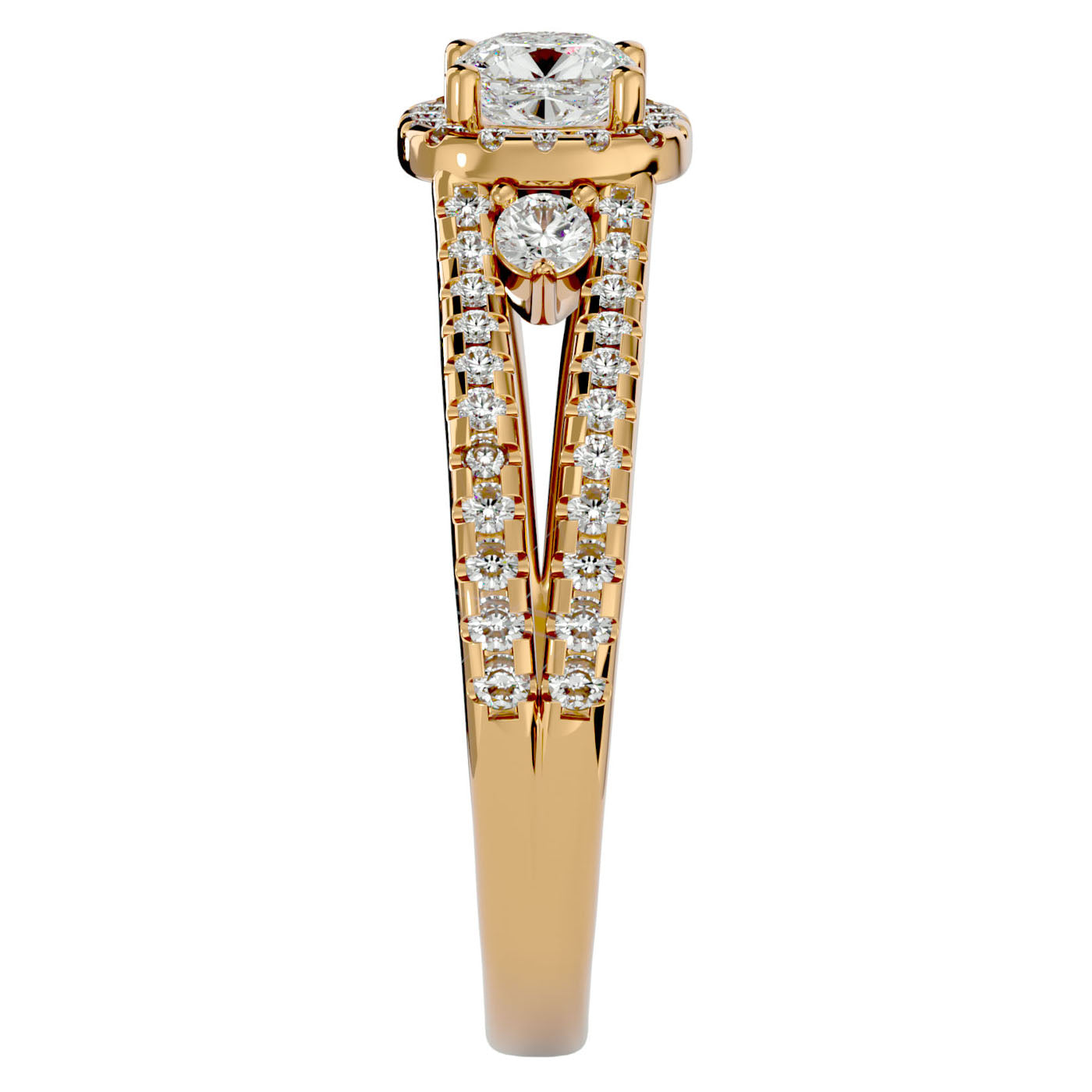 Montura din Aur de 14k, oferită în opțiuni de Aur Alb, Aur Galben, Aur Roz sau Platina, completează acest tablou regal, adăugând o notă de eleganță distinctă. Designul inelului Éliane, cu linii fluide și o simetrie armonioasă, este inspirat de opulența și grandiozitatea epocilor de aur, fiind ideal pentru cei care își doresc să celebreze dragostea printr-o bijuterie memorabilă și plină de semnificație.
