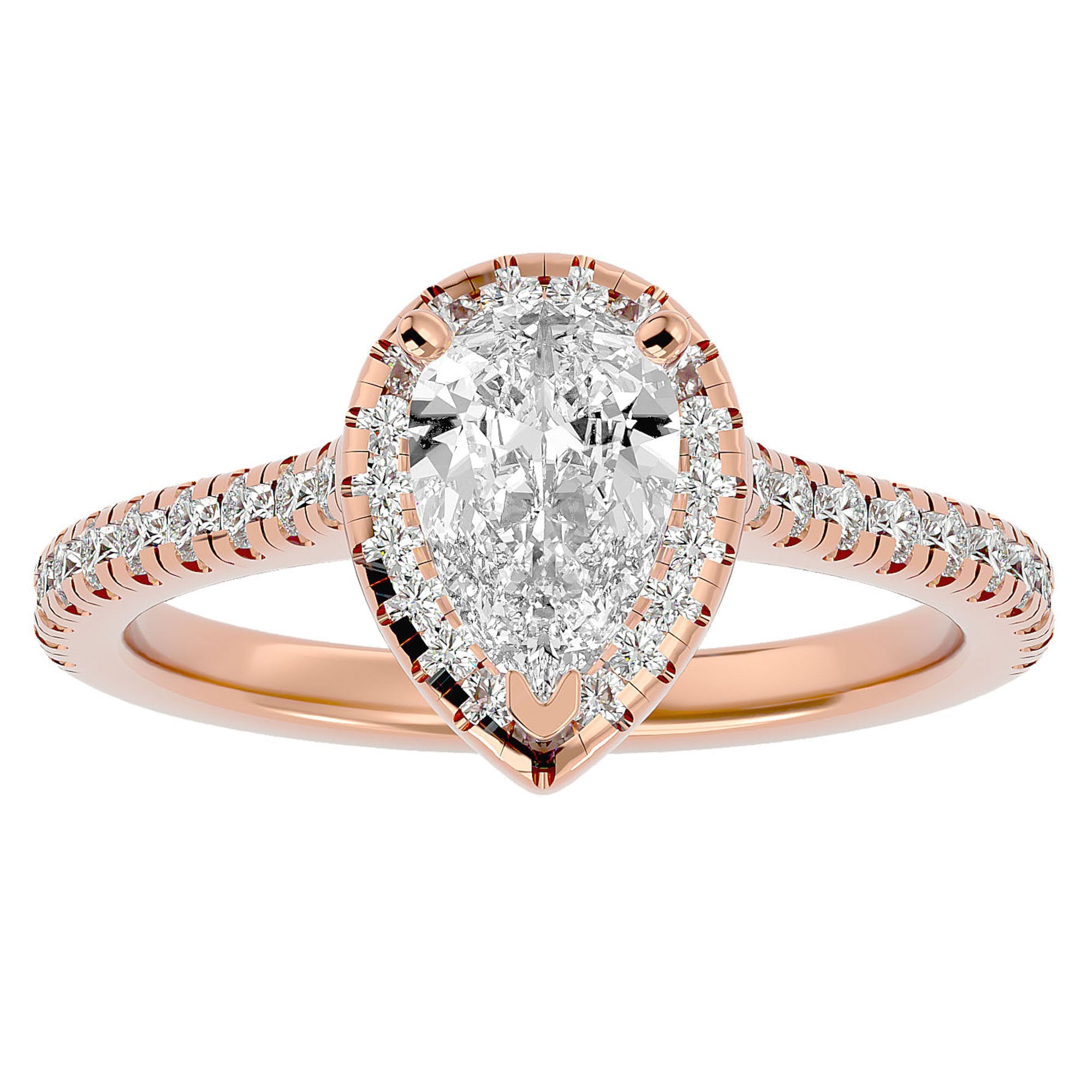 Inel de Logodnă Pavé cu Diamante Naturale Pară Fațetată de 1.09 ct