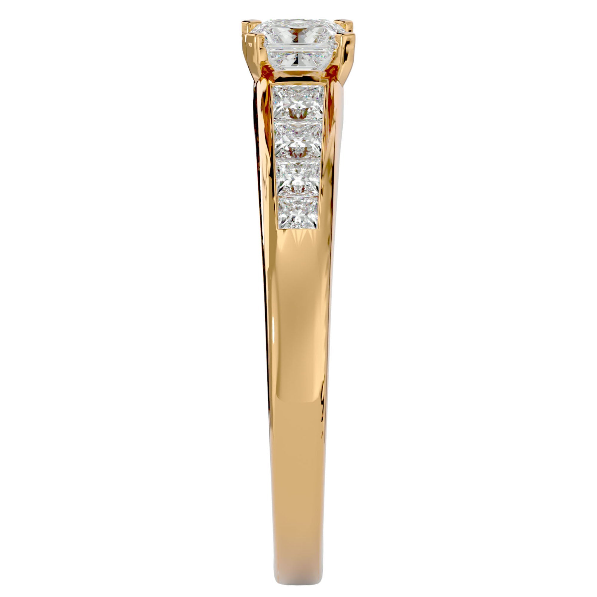 Împodobit cu un diamant natural tăietură Princess de 0.61 ct, acest inel strălucește cu o intensitate captivantă, evocând grația și eleganța unei iubiri eterne. Fiecare diamant natural este selectat cu grijă și montat cu o precizie desăvârșită, conferind acestei bijuterii o aură de rafinament, ideală pentru momentele speciale ce merită celebrate cu stil și grație.