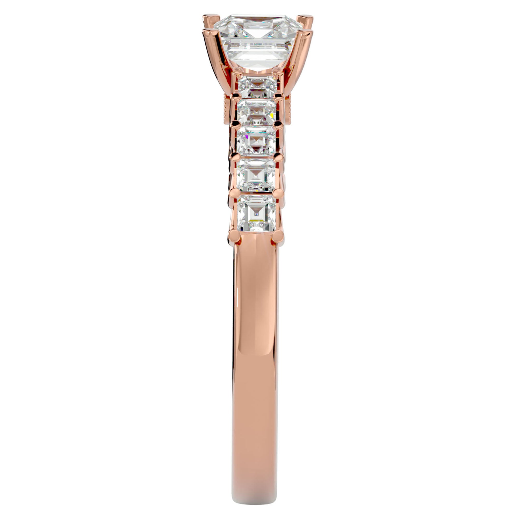 Împodobit cu diamante create în laborator tăietură Princess de 0.85 ct, acest inel strălucește cu o intensitate captivantă, evocând grația și eleganța unei iubiri eterne. Fiecare diamant creat în laborator este selectat cu grijă și montat cu o precizie desăvârșită, conferind acestei bijuterii o aură de rafinament, ideală pentru momentele speciale ce merită celebrate cu stil și grație.