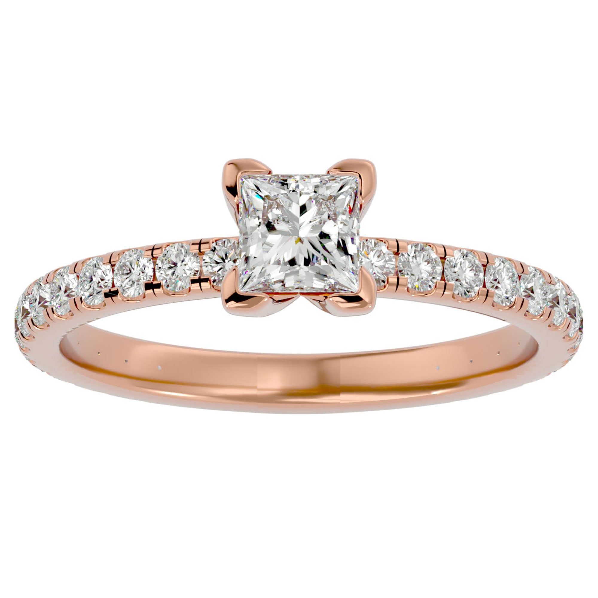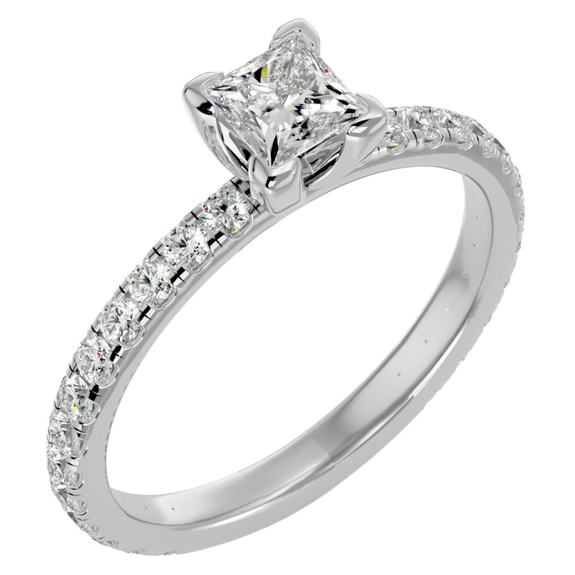 Alegeți inelul de logodnă Pavé cu diamant creat în laborator tăietură Princess și celebrați legătura eternă cu o piesă de o frumusețe regală și un rafinament aparte. Comandați acum și adăugați o notă de noblețe poveștii dumneavoastră de dragoste.