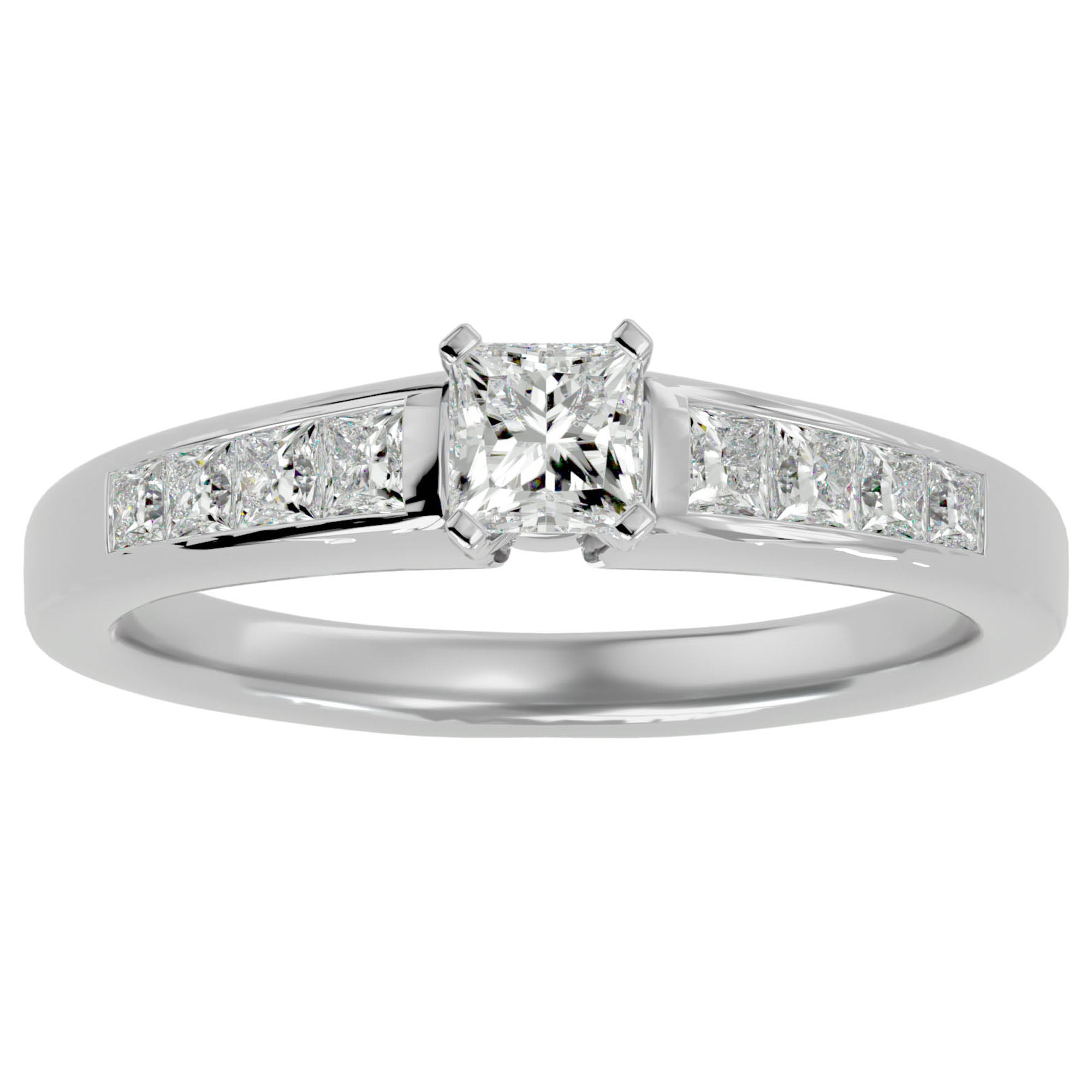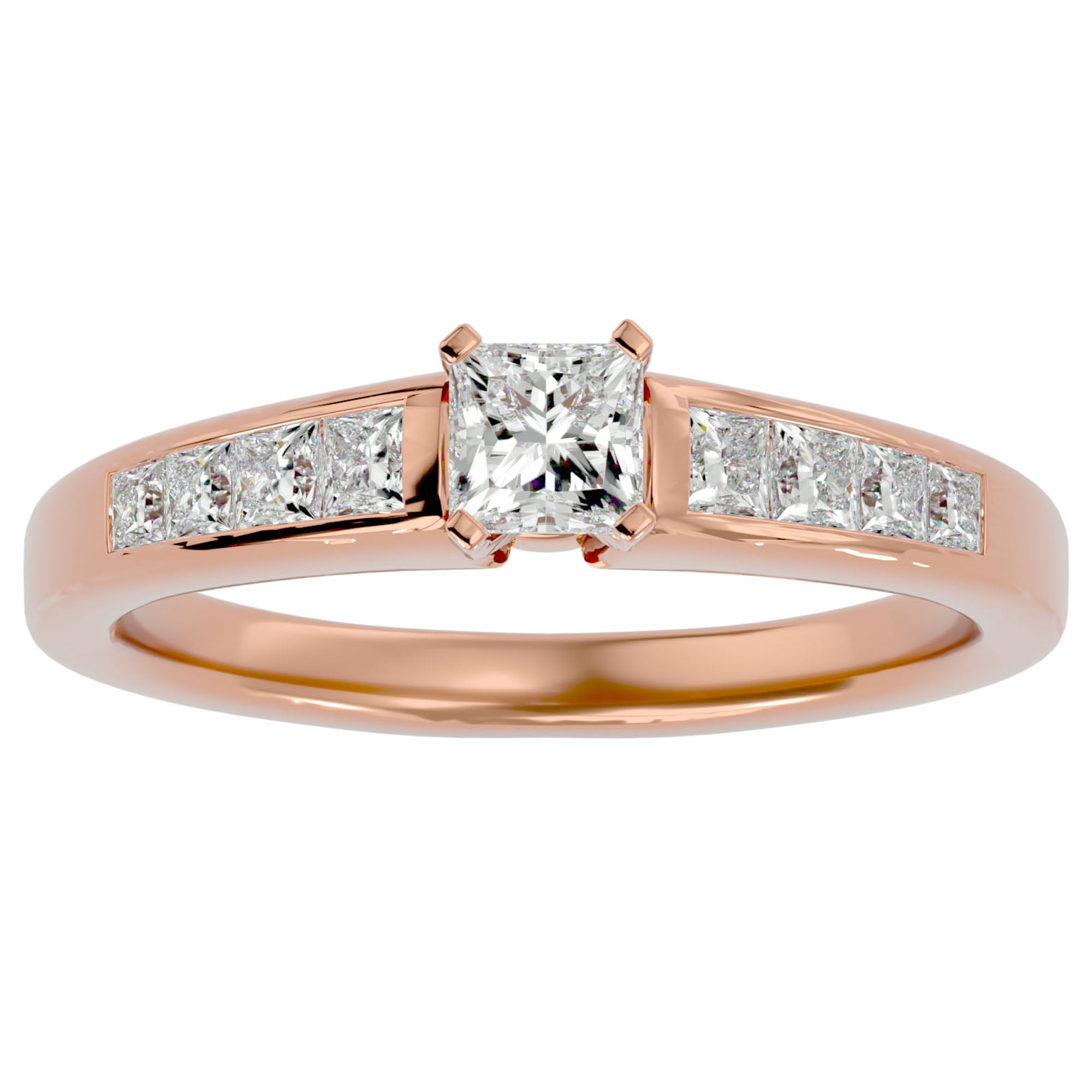 Împodobit cu un moissanite tăietură Princess de 0.61 ct, acest inel strălucește cu o intensitate captivantă, evocând grația și eleganța unei iubiri eterne. Fiecare moissanite este selectat cu grijă și montat cu o precizie desăvârșită, conferind acestei bijuterii o aură de rafinament, ideală pentru momentele speciale ce merită celebrate cu stil și grație.